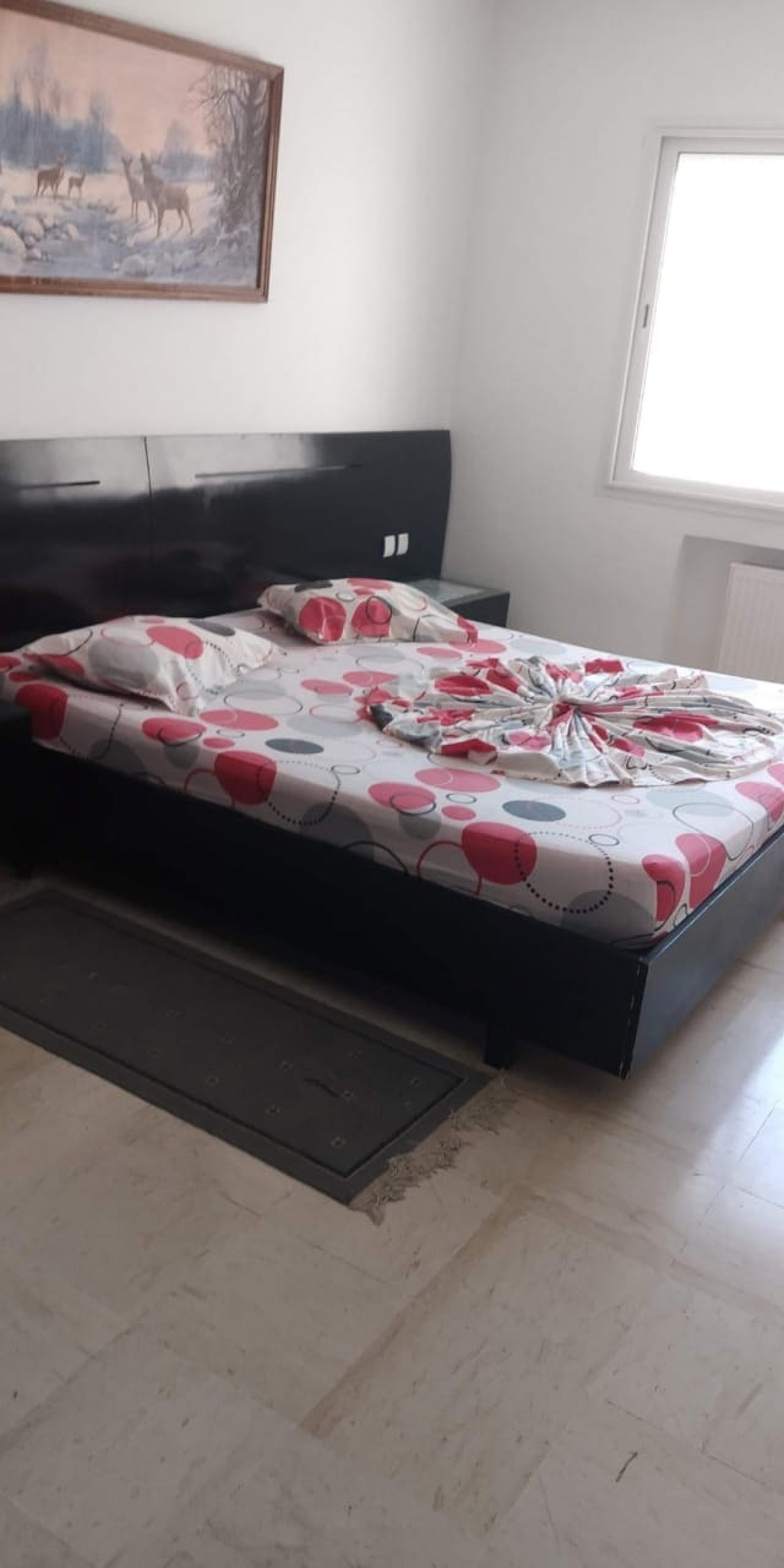 L’Agence Immobilière Nour Ennasr met en location à Monastir un appartement moderne haut standing confortablement meublé de 70 M2 répartis sur un salon et deux chambres à coucher . sol en marbre blanc le salon comporte un tableau artistique mural . les fenêtres sont alu vitré avec ouverture électrique . l’appartement comprend une cuisine équipée de luxe et une salle de bain avec jacuzzi . l’appart dispose d’un balcon qui offre une vue agréable .