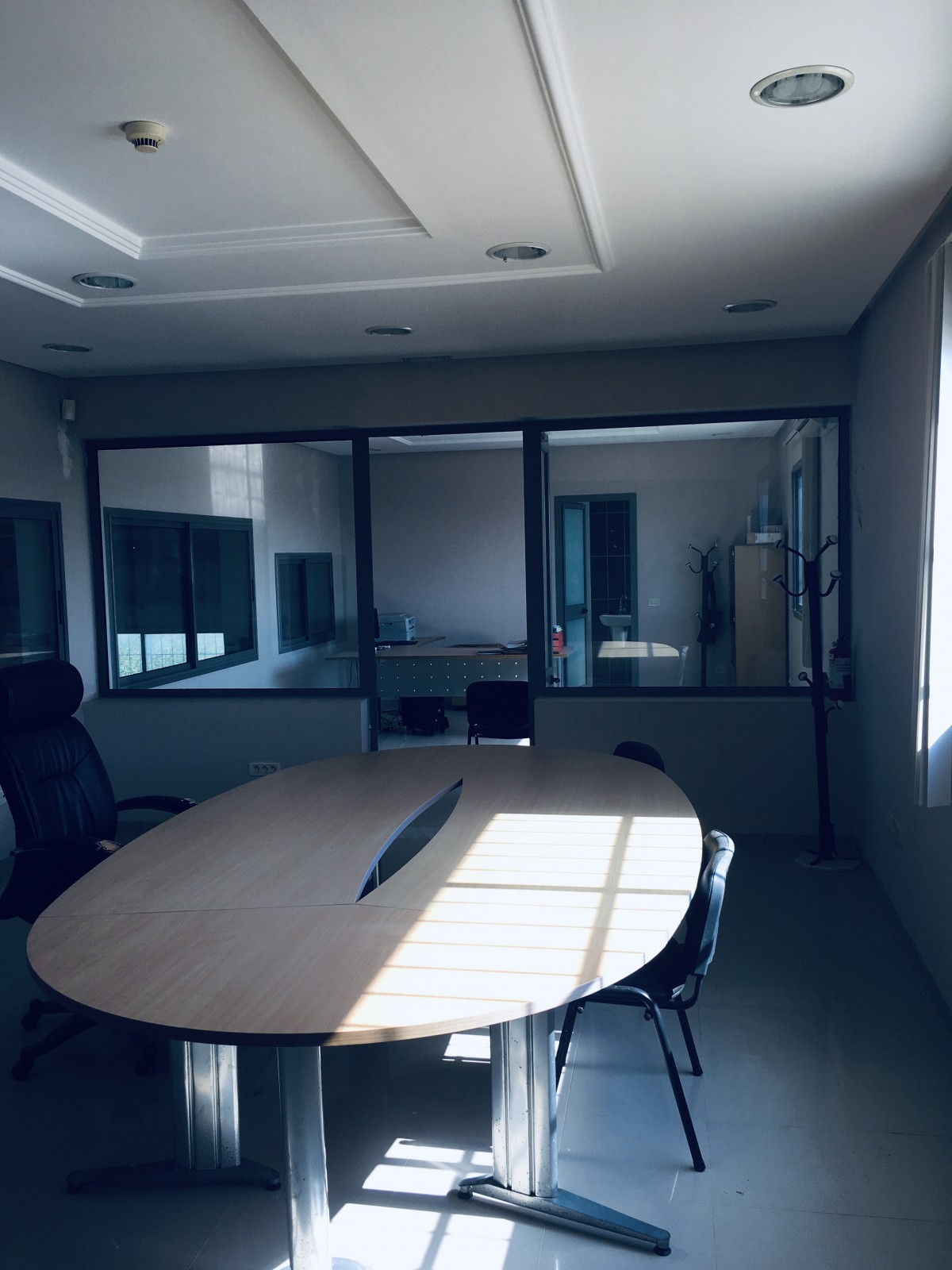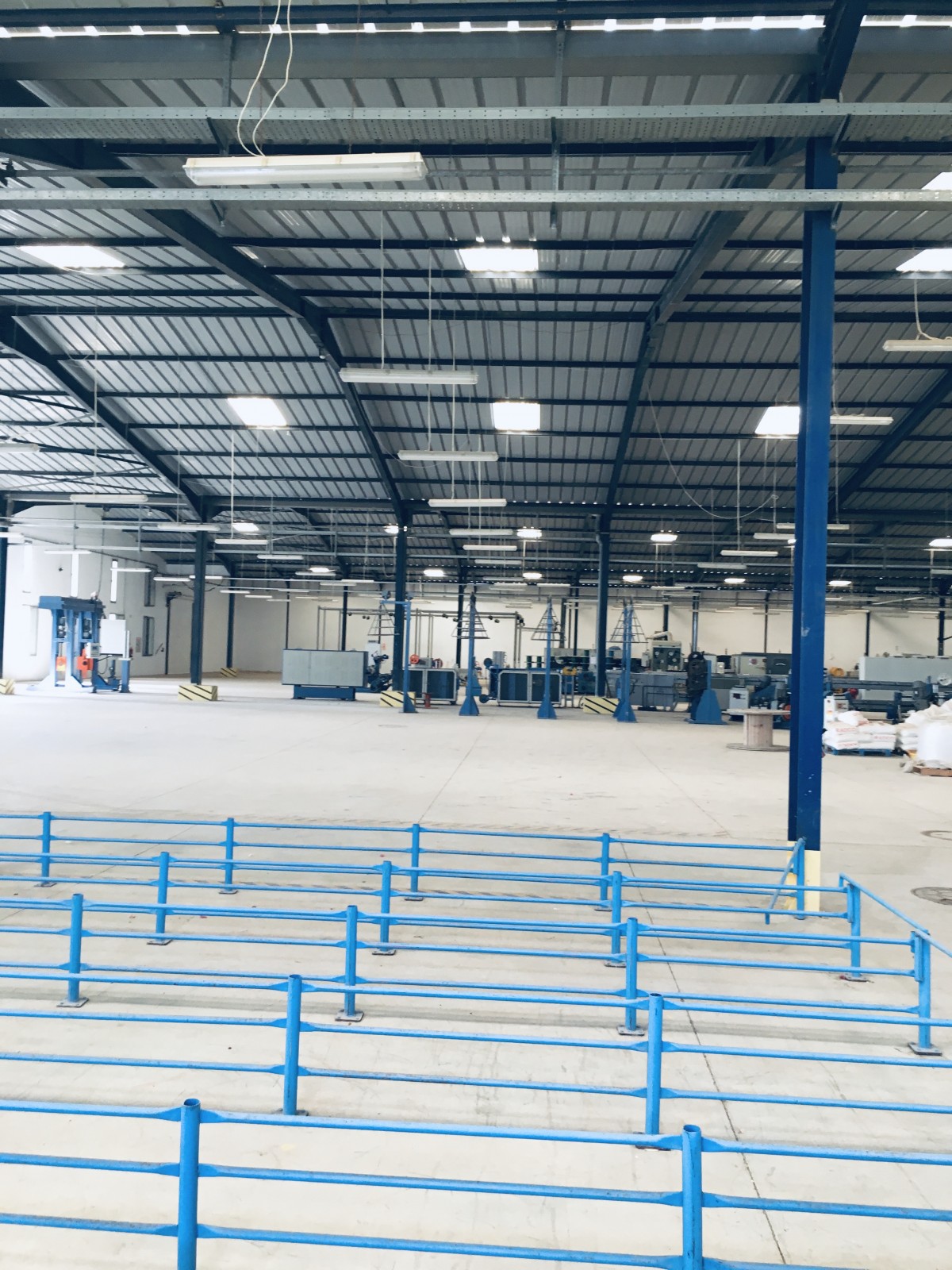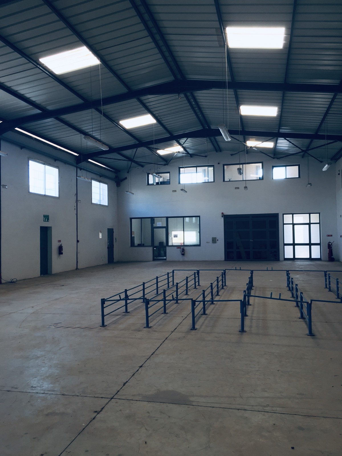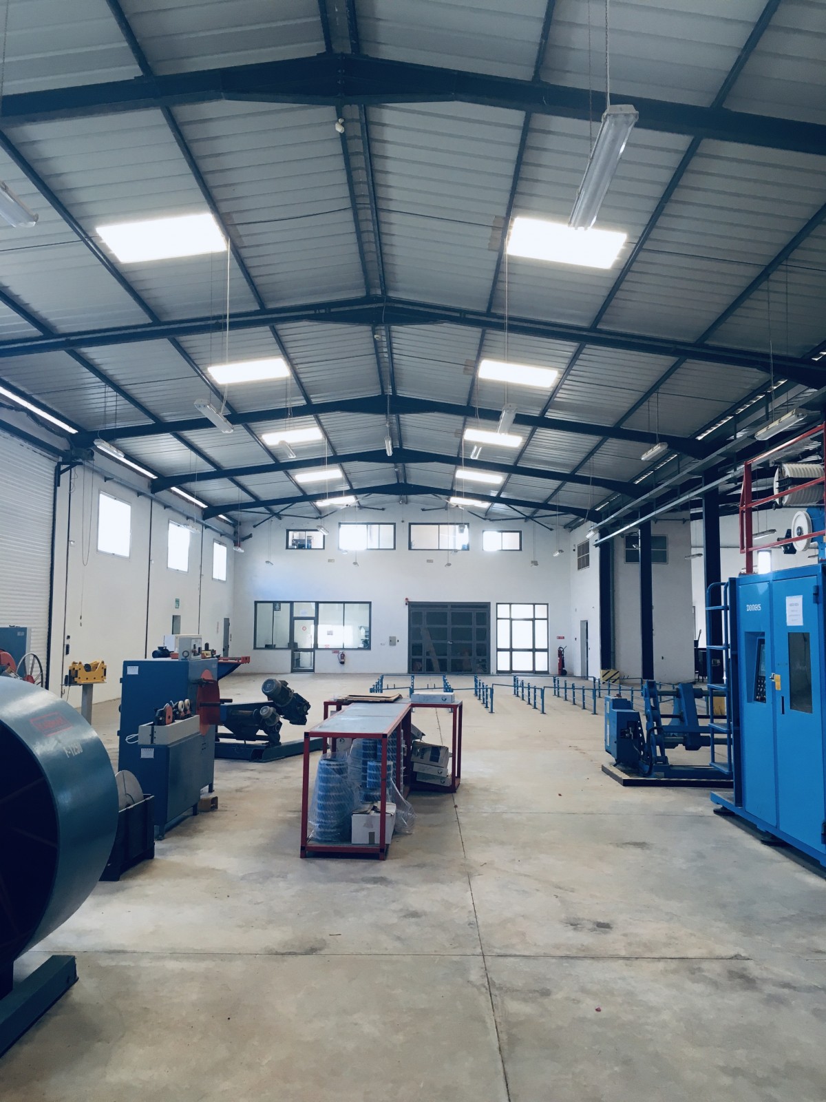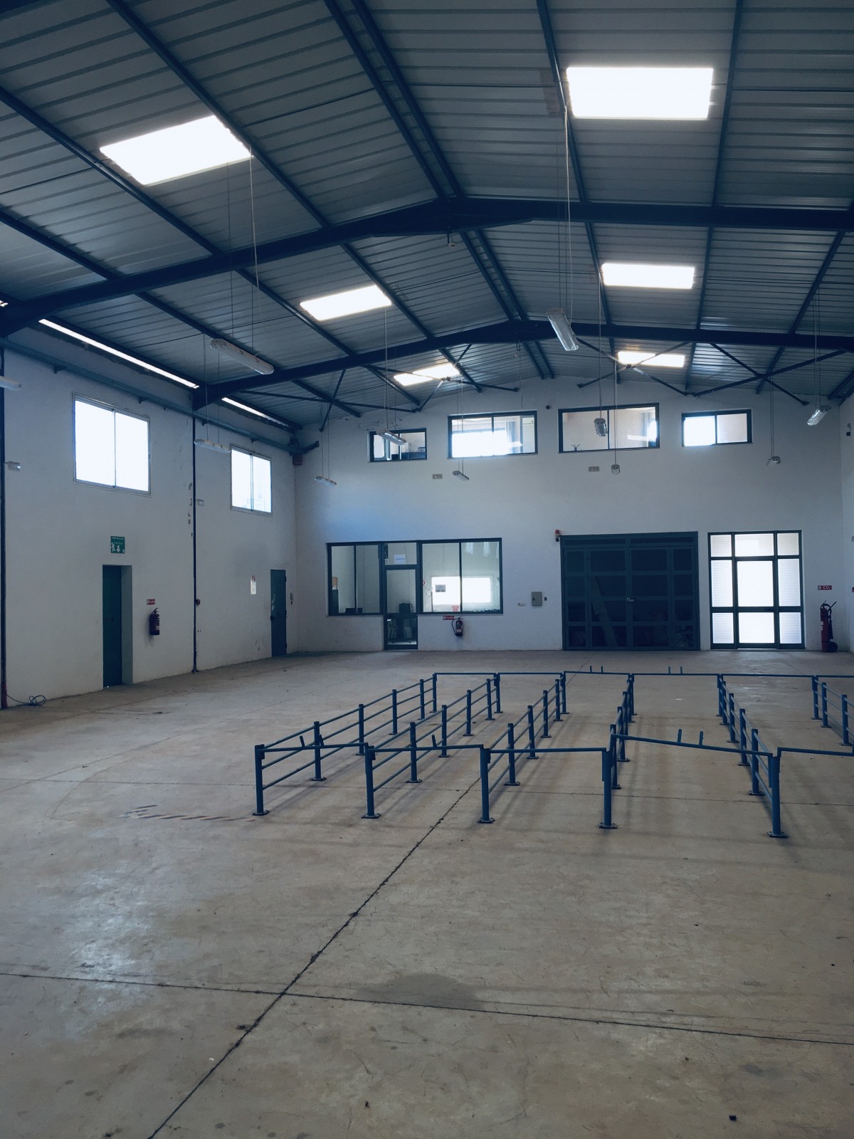 56,3 X 36 M et 45.8 x 28,8 M toit en charpente haut de 6 et 8 M sol industriel lisse, L’espace administration fait 360 M2. L’entrée camion est arboré dans ses côtés et mène vers le quai. La puissance électrique est de 630 KVA partagée. Le bloc administratif dispose d’une entrée vitrée avec jardin arboré et vert. Les bureaux sont meublés ainsi que les salles de réunion et d’attente.la distribution électrique, éclairage, force et prises sont en parfait état. Le local est extensible à 5105 M2 couverts.