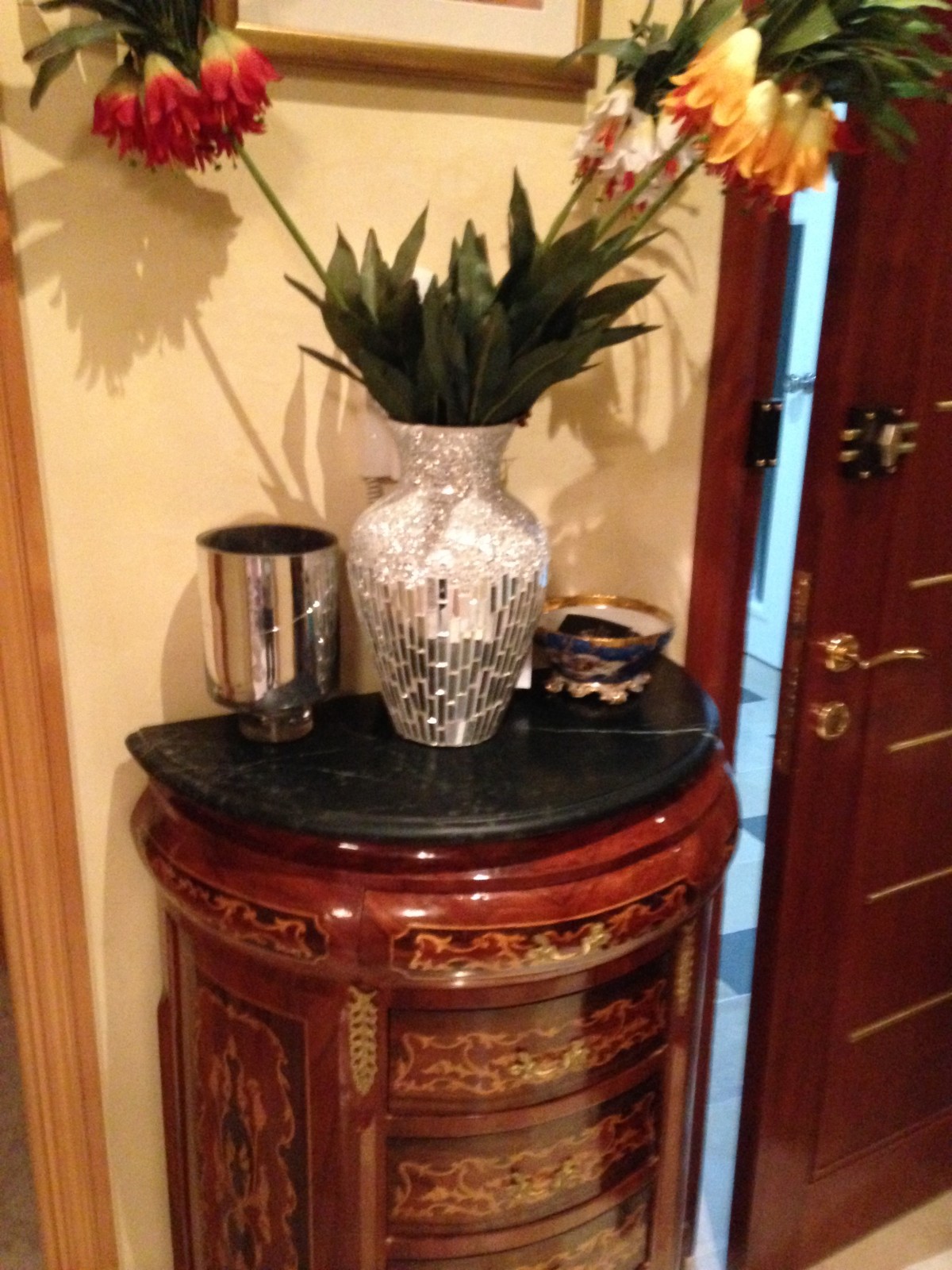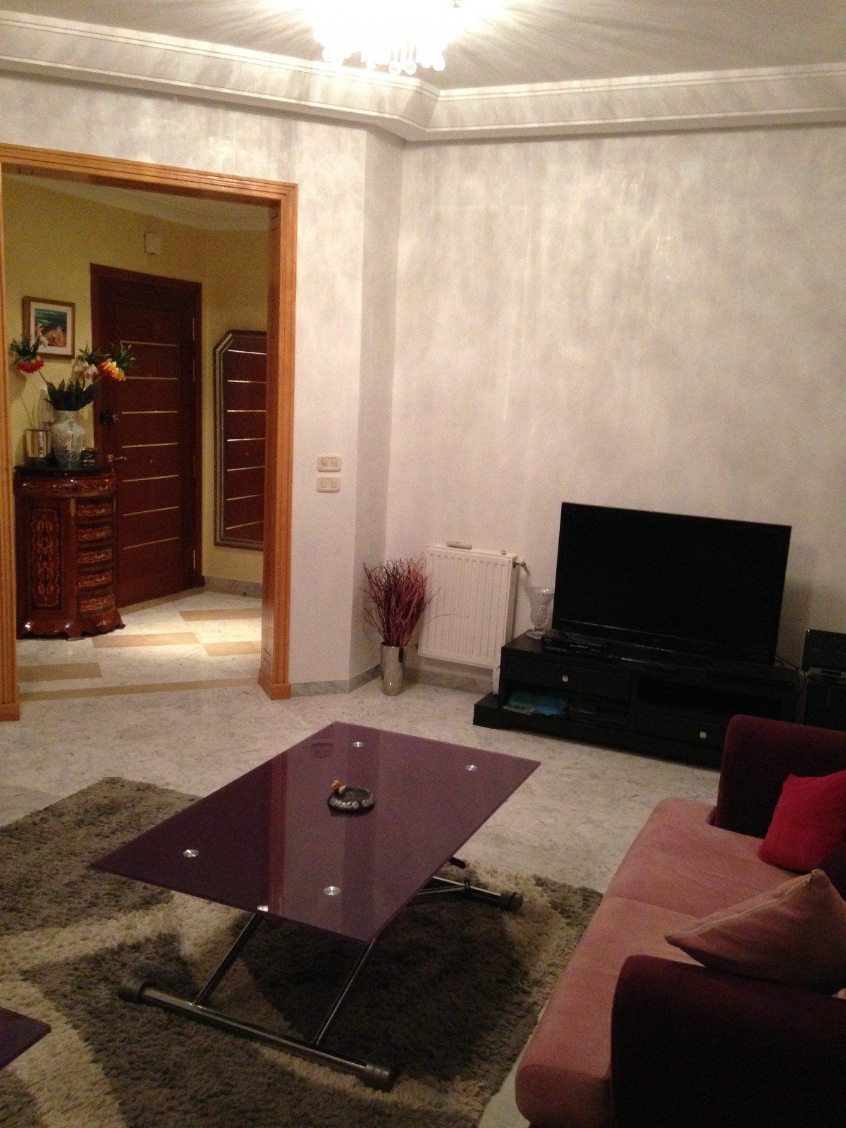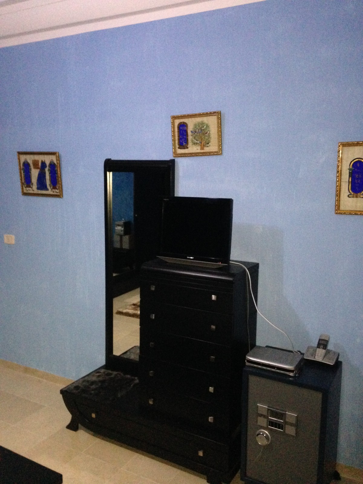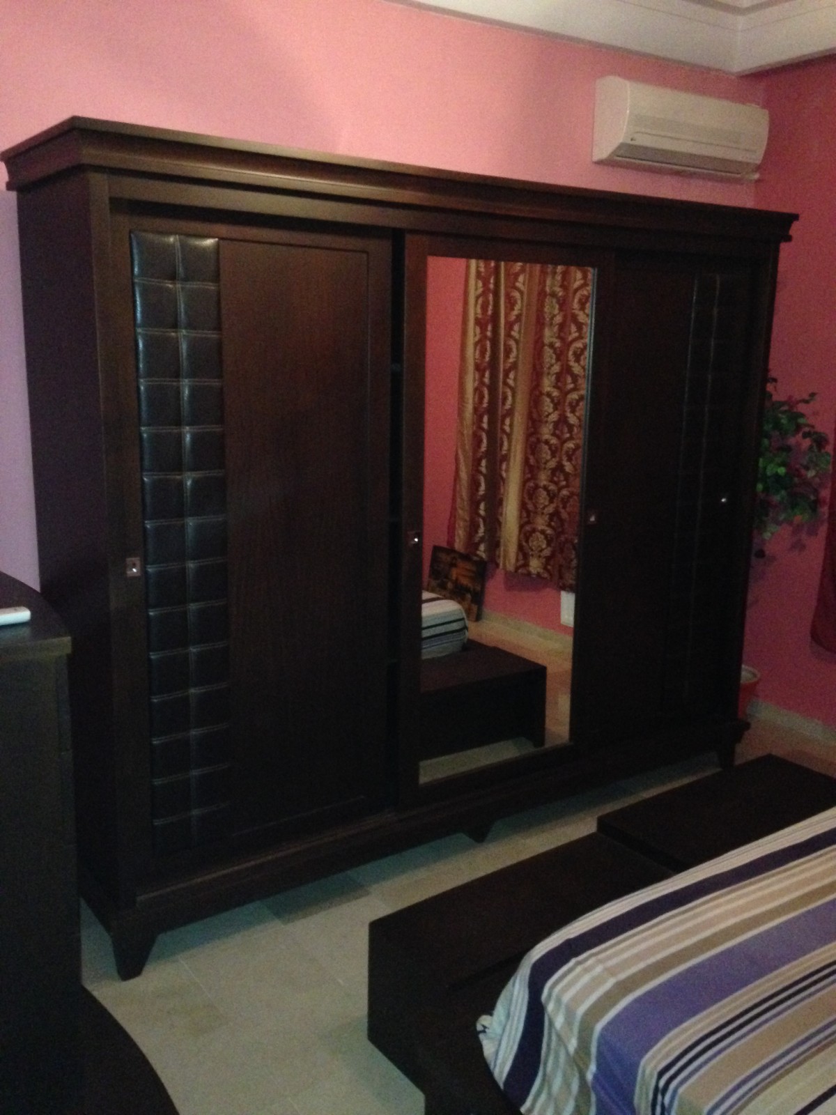 L'appartement est meuble de luxe et équipé de lave linge , lave vaisselle , réfrigérateur , TV et tableaux artistiques .. trois lits deux places sont places dans les chambres avec gardes robes et meubles de décoration .