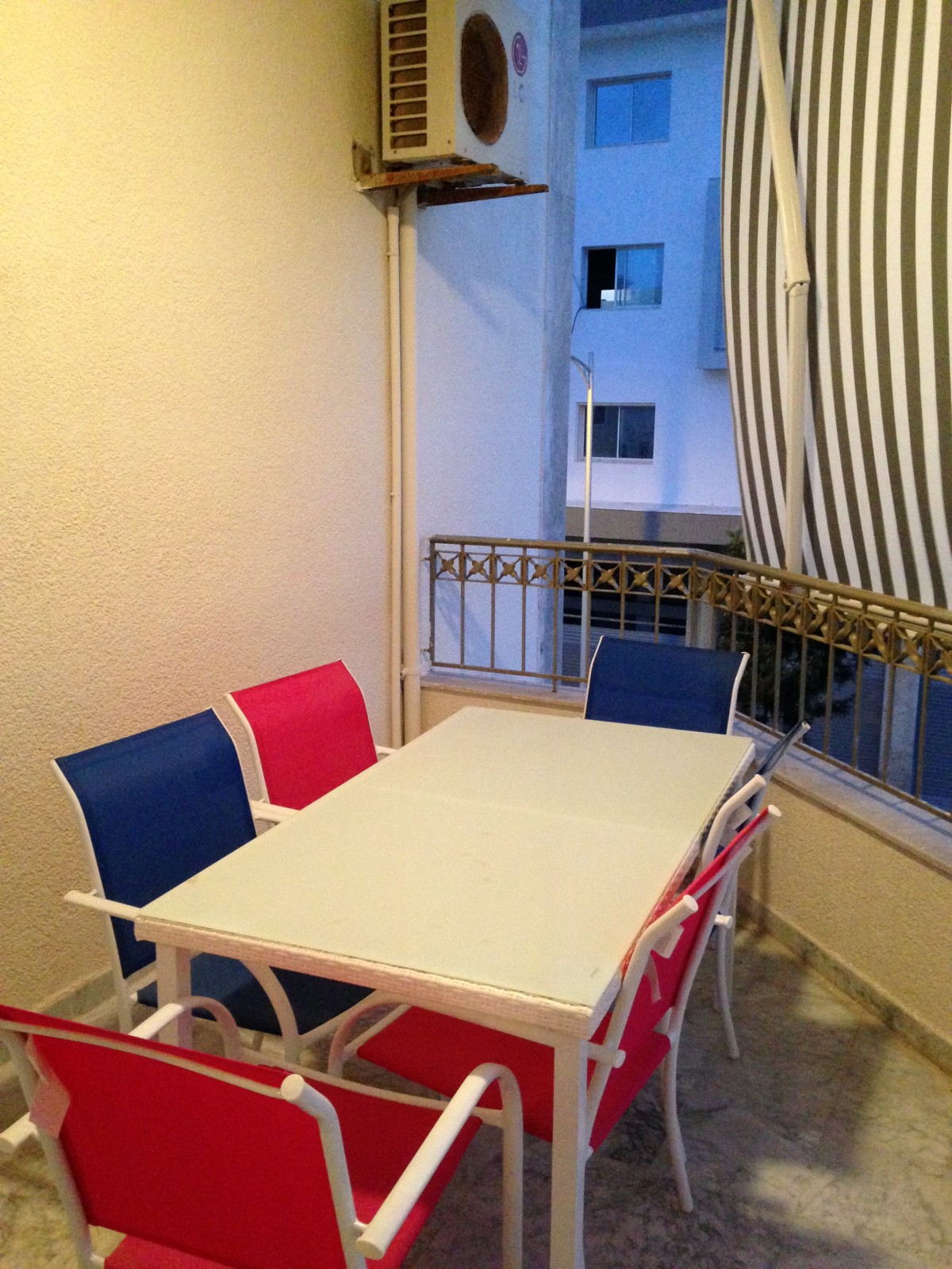 L'appartement est équipé de chauffage central , eau chaude , climatiseurs et interphone .