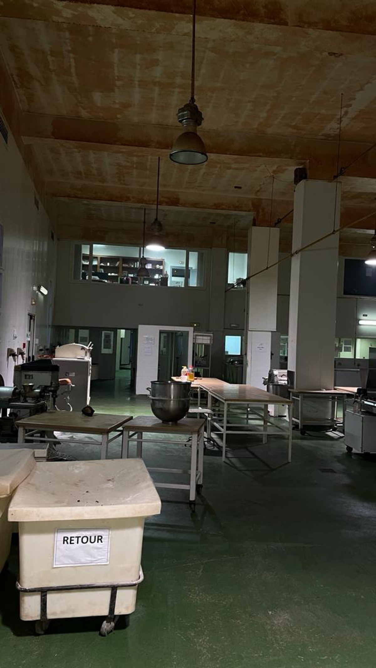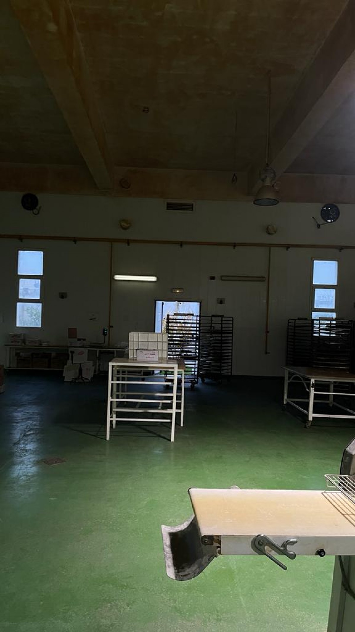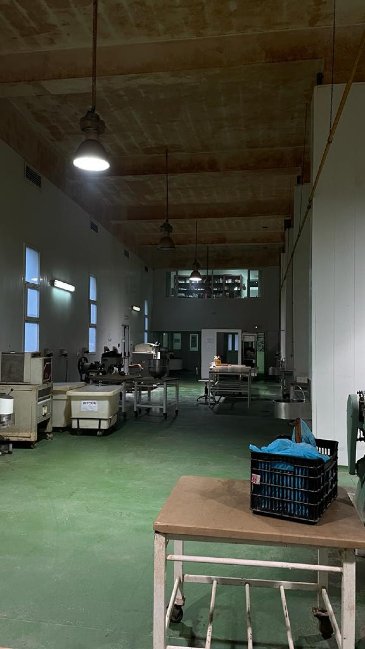 L’Agence Immobilière Nour Ennasr met en location à Tunis une usine de production de produits de pâtisserie équipée de fours , chambres froides et tous matériel de production et de préparation des matières et des ustensiles utiles . La surface couverte total atteint 1214 M2 sur un terrain Total de 1956 M2 . La surface couverte toit en Dalle trois parties : l’espace principal de production fait 450 M2 ( 25 X 18 M ) hauteur sous plafonds 5,9 M piliers espacés de 3,75 5 ,8 et 11 M , sol industriel force électrique distribuée pour toutes les équipements de malaxeurs , fours , moules et autres .A l’entrée de cet espace de production un magasin de réception stockage et traitement de matières fait 180 M2 environ , le magasin out de produits finis fait la même surface , ces magasins sont haut de 3,5 M avec un espace social qui leur est rattaché .A l’étage des ces magasins l’espace administratif occupe un open Space et quelques bureaux sur 360 M2 aussi . La loge gardien fait 24 M2 et le bureau de douanier fait 20 M2 . Un parking couvert accueille 3 places . La puissance électrique est de 100 Ampères . Gaz de ville , air comprimé eau sont distribués .