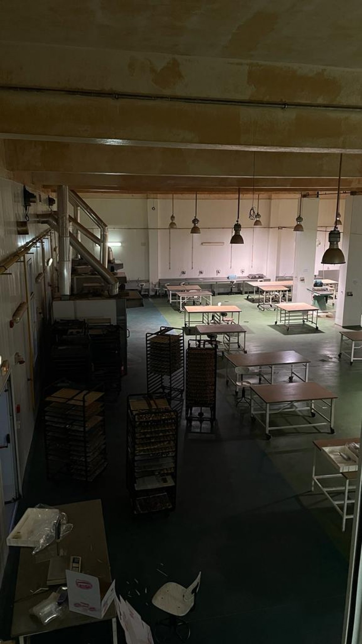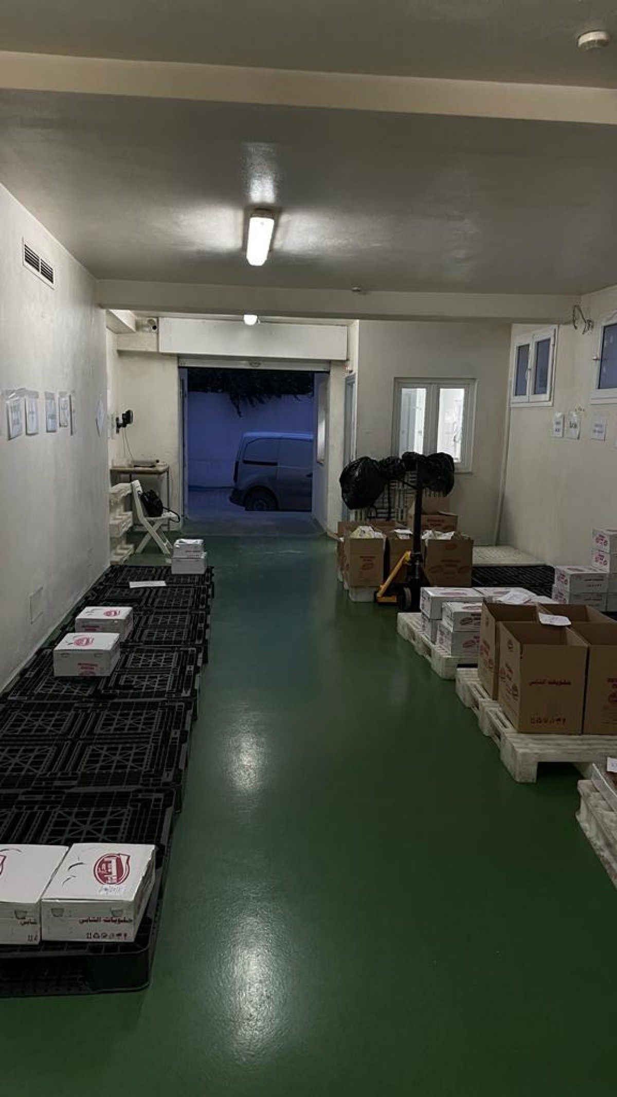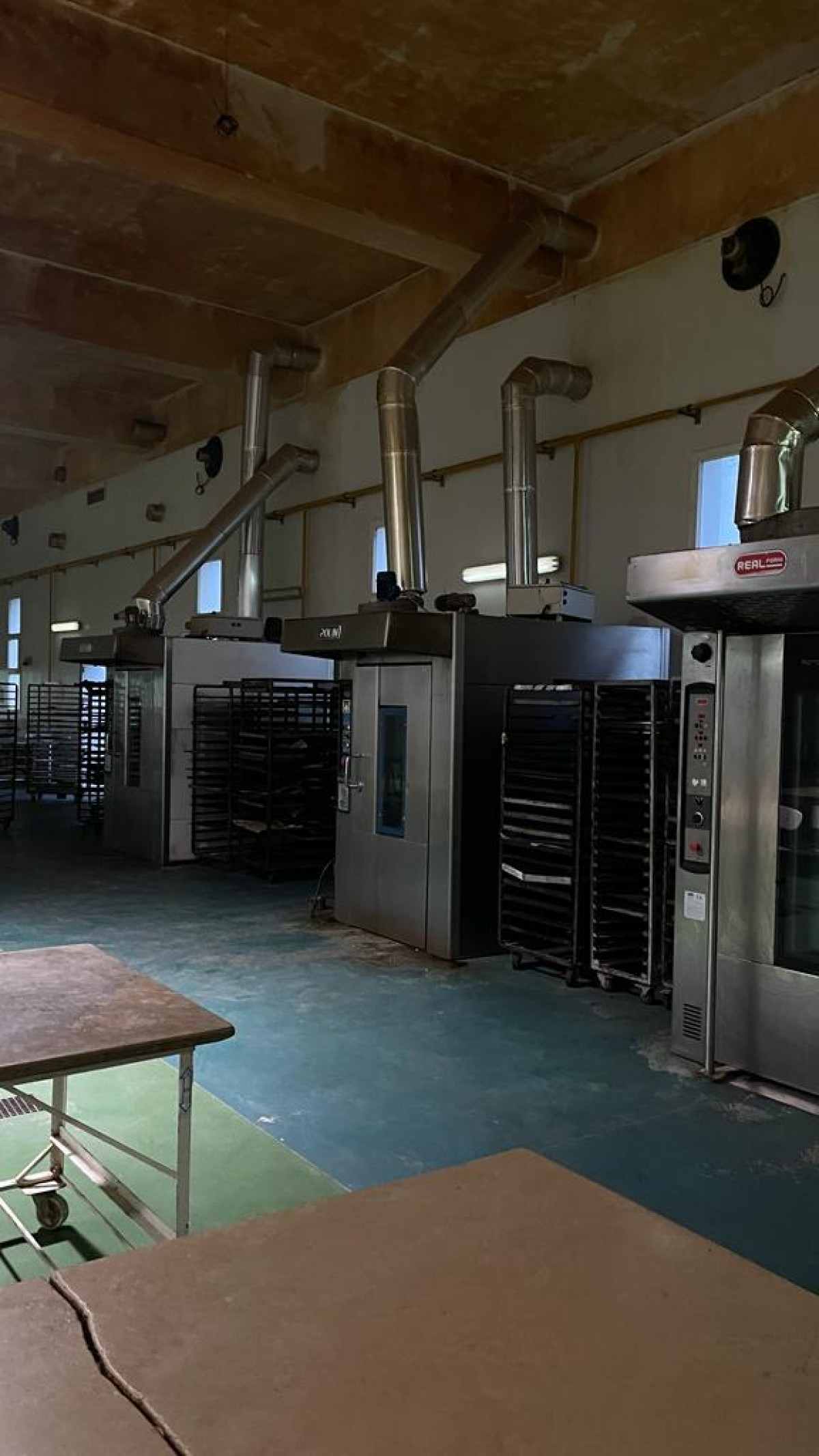 L’Agence Immobilière Nour Ennasr met en location à Tunis une usine de production de produits de pâtisserie équipée de fours , chambres froides et tous matériel de production et de préparation des matières et des ustensiles utiles . La surface couverte total atteint 1214 M2 sur un terrain Total de 1956 M2 . La surface couverte toit en Dalle trois parties : l’espace principal de production fait 450 M2 ( 25 X 18 M ) hauteur sous plafonds 5,9 M piliers espacés de 3,75 5 ,8 et 11 M , sol industriel force électrique distribuée pour toutes les équipements de malaxeurs , fours , moules et autres .A l’entrée de cet espace de production un magasin de réception stockage et traitement de matières fait 180 M2 environ , le magasin out de produits finis fait la même surface , ces magasins sont haut de 3,5 M avec un espace social qui leur est rattaché .A l’étage des ces magasins l’espace administratif occupe un open Space et quelques bureaux sur 360 M2 aussi . La loge gardien fait 24 M2 et le bureau de douanier fait 20 M2 . Un parking couvert accueille 3 places . La puissance électrique est de 100 Ampères . Gaz de ville , air comprimé eau sont distribués .