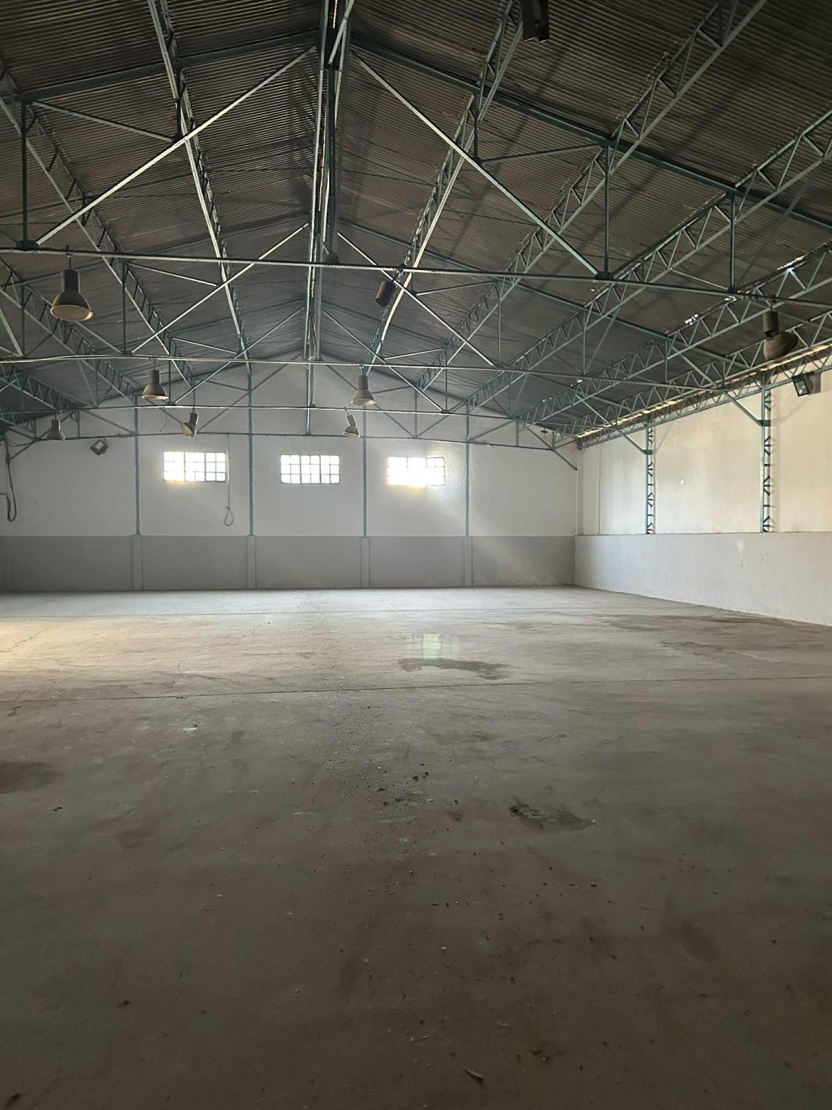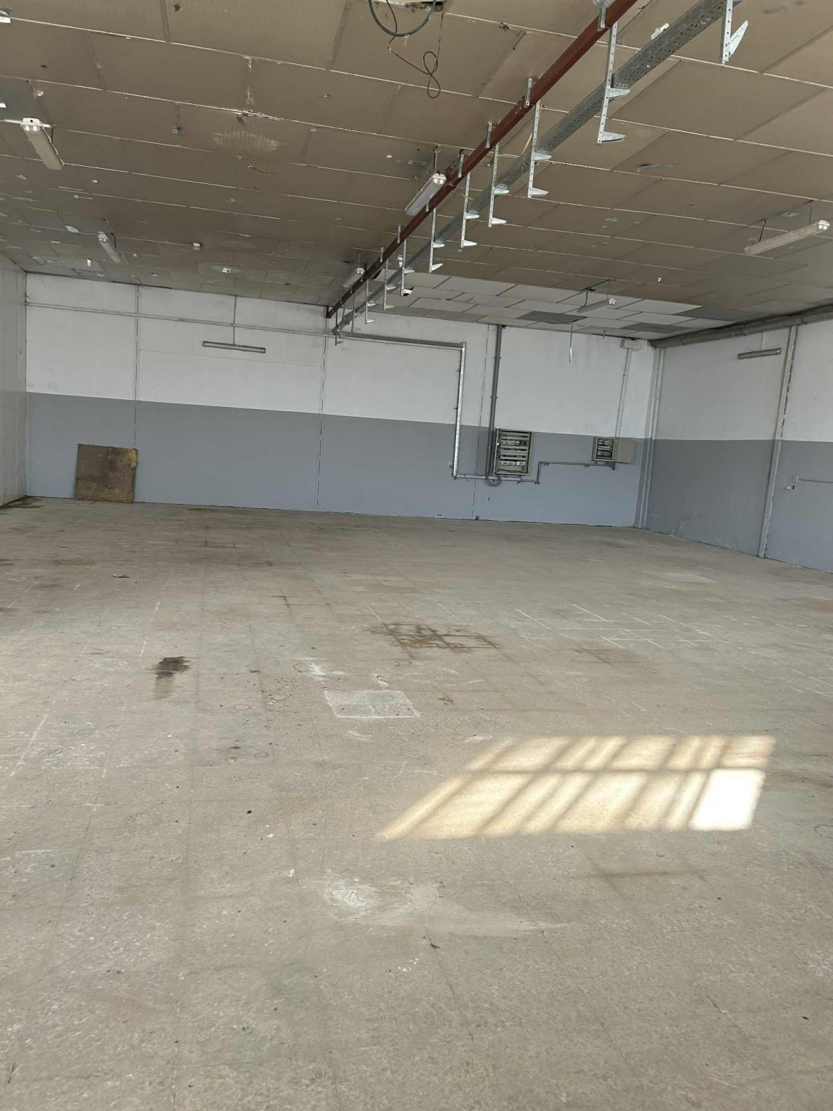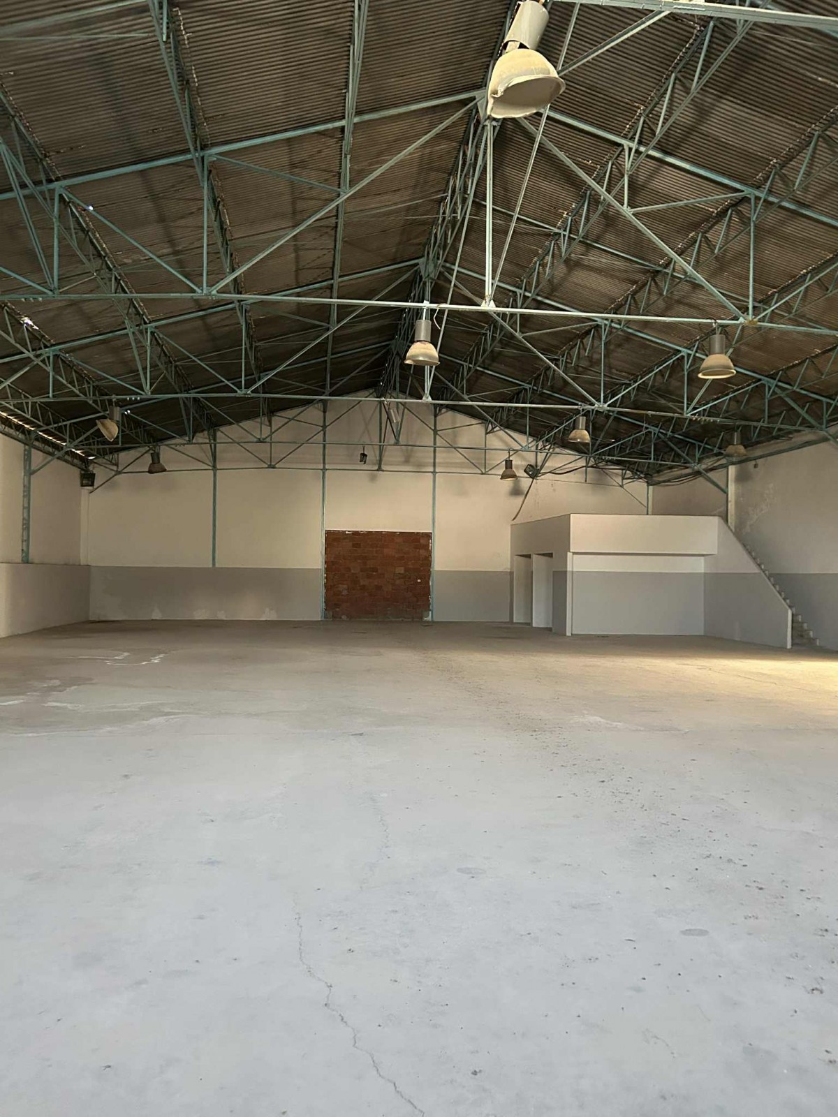 Sol Industriel avec mezzanine et partie couverte en fibre de verres sous charpente .