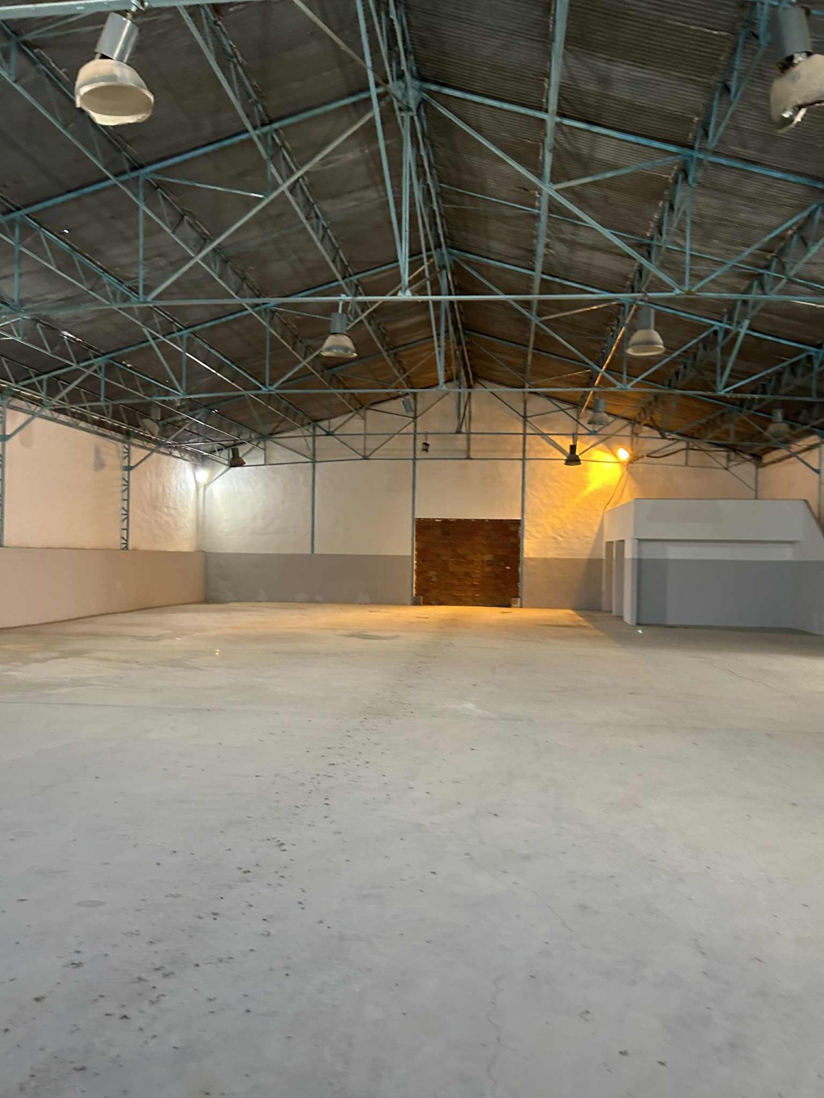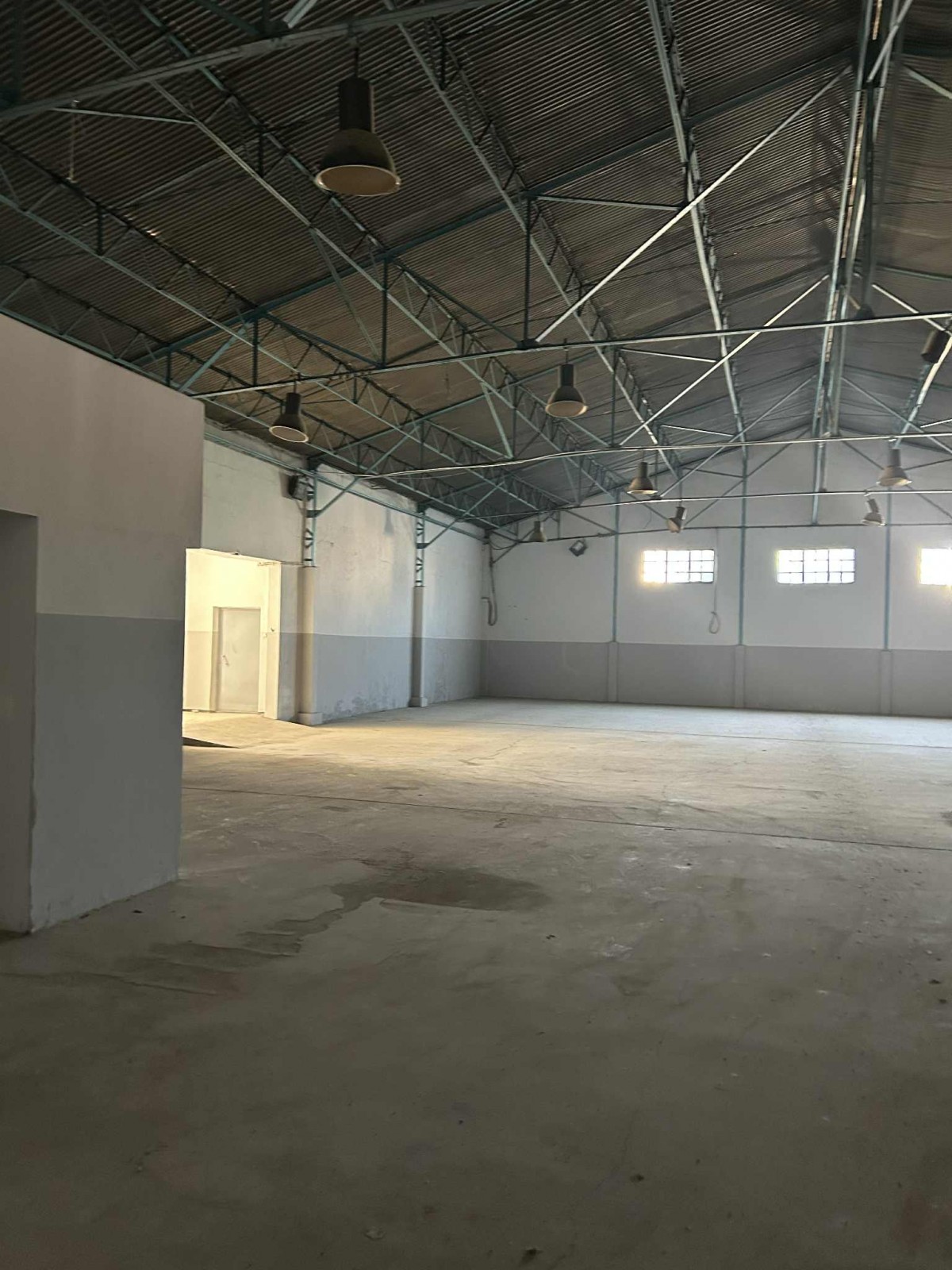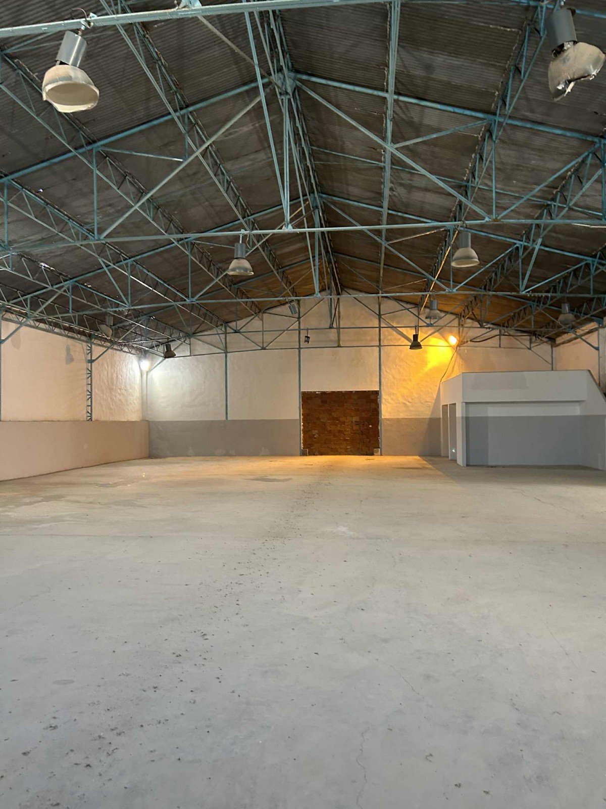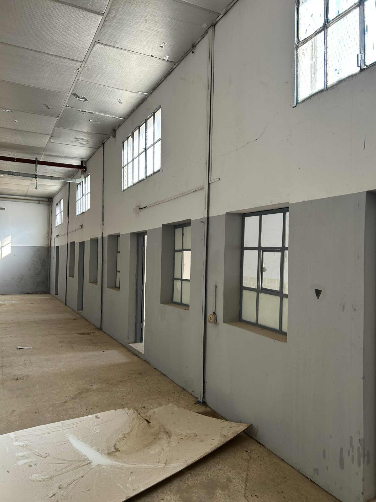 Sol Industriel avec mezzanine et partie couverte en fibre de verres sous charpente .