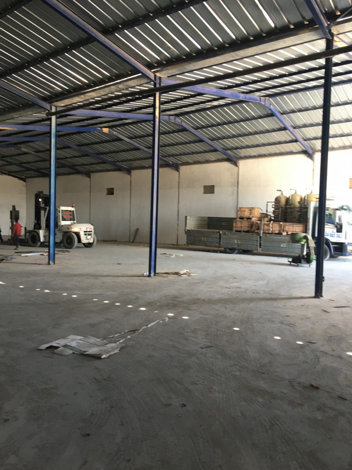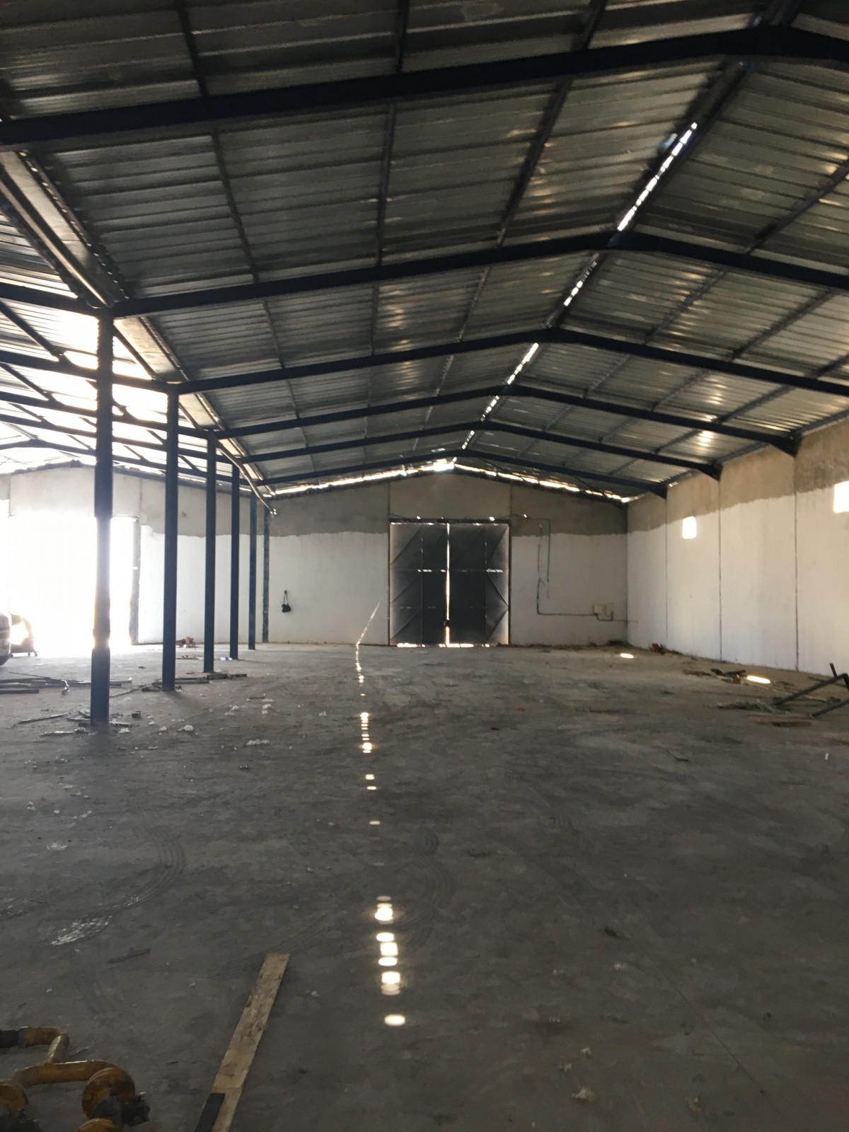 40 X 30 M avec terrain non couvert à la façade suffisant pour les mouvements de camions de chargement . le dépôt est couvert en charpente tôle ondulée hauteur sous plafonds 6 M des cotés et 7,5 M au pic sol industriel lisse et portes larges et hautes permettant l’accès de camions poids lourds . Le dépôt est accessible pa rue propre de la route principale . le dépôt est situé dans un emplacement liée par voies rapides à la capitale , à l’autoroute et au port commercial de Rades .