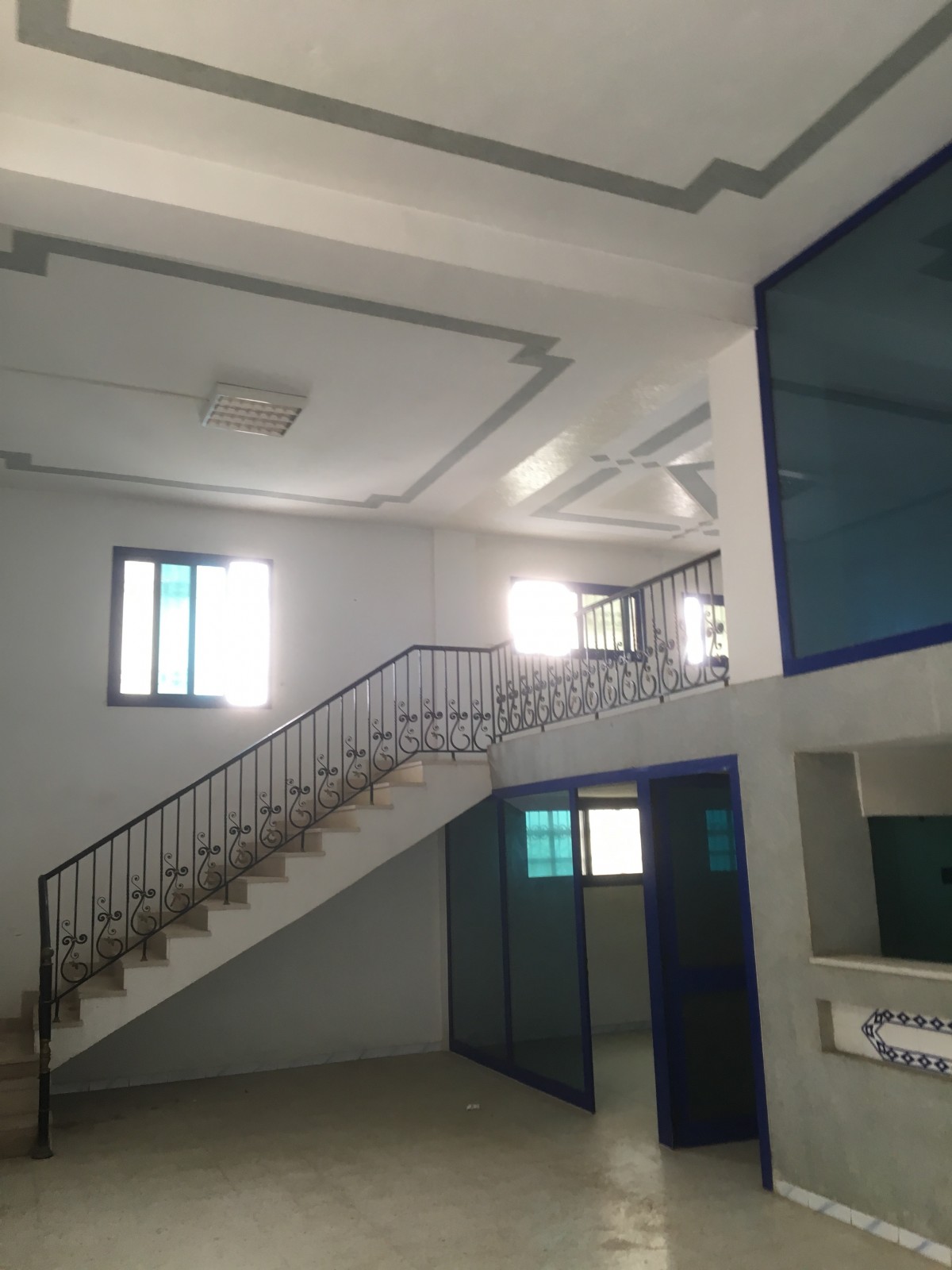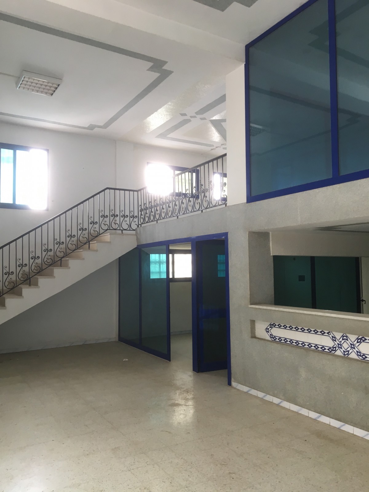 L’Agence Immobilière Nour Ennasr met en location à Sousse un local Industriel surface couverte 1100 M2 sur un tyerrain total de 1230 M2 . La surface couvrte comprends un atelier de 950M2 hauteur sous plafonds mètres , dallage industriel au sol et piliers espacés de 5 mètres au carré . la puissance électrique est de 125 ampères . Le local comprend aussi un bureau de douanier au RDC et une entrée camions . le bloc administratif sur deux niveaux présente un comptoir de réception et deux bureaux au RDC et trois bureaux en mezzanine avec vitrage et alu de qualité .Le local se situe dans une zone d’activité facilement accessible par autoroute et voies rapides .