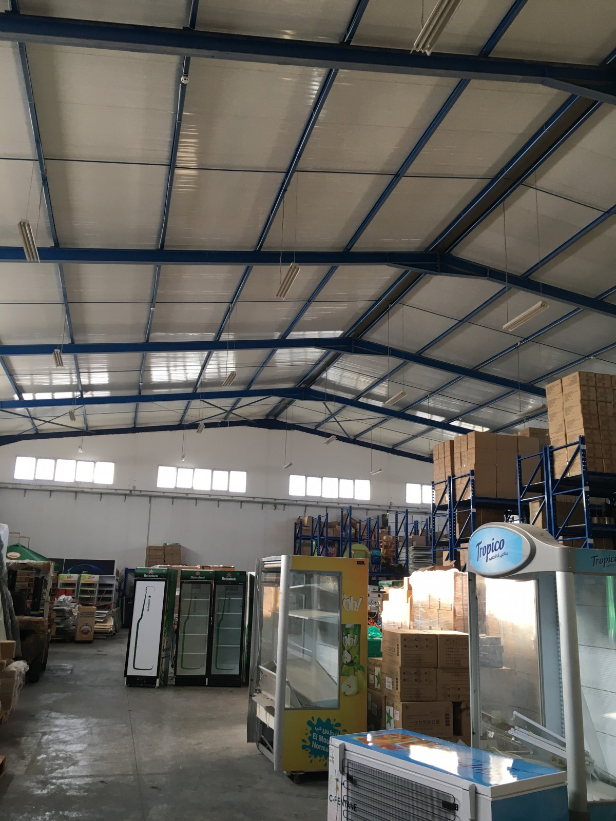 L’Agence Immobilière Nour Ennasr met en location à Tunis Sud un local Industriel de surface totale couverte de 1120 M2 sur un terrain Total de 4574 M2 . Le couvert comprend essentiellement un atelier toit en charpente de 864 M2 soit 36 X 24 M haut de 7,5 M des cotés et 9 M au pic , sol industriel lisse et porte haute de 4 M et large de 3M . Le local comprend outre la loge gardien à l’entrée , un bloc administratif et social de 236 M2 environ sur deux niveaux avec toilettes et bureaux et aces direct vers l’atelier . Le local dispose d’une puissance électrique de 100 Ampères . Le local est extensible au double de sa surface actuelle du fait que le bâti actuel est cadré a coté d’un terrain de 4500 M2 . Le local est clôturé indépendant et facilement accessible .