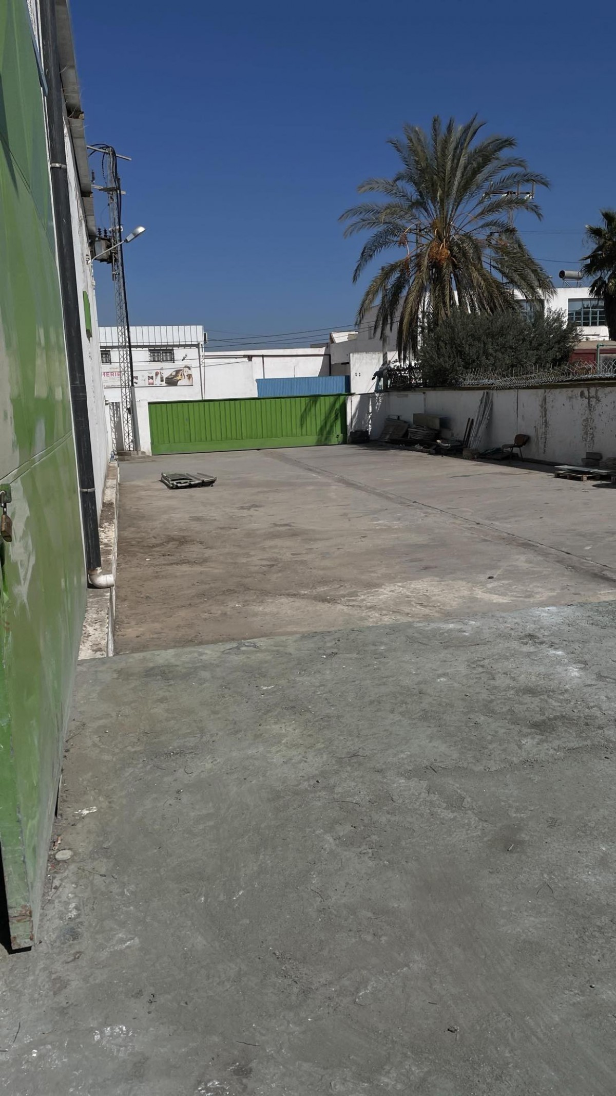 L’Agence Immobilière Nour Ennasr met en location à Tunis Sud un local Industriel à proximité du port Commercial de Rades de surface couverte 640 M2 sr un terrain Total de 1240 M2 . le dépôt princiapl fait 600 M2 dimension 20 X 30 M toit e charpente tole nervurée haut de 5 m des cotés et 7 M au pic sol Industriel double porte large et Quai de chargement . Un 2e quai de coté est non couvert avec rampe facilite le flux des matières et produits. L’espace administratif de 40 M2 comporte deux bureaux couloir et toilette lavabo .La puissance électrique est de 100 Ampères sur compteur triphasé . la façade de la clôture sur l’avenue principale fait 32 M environ et comporte deux portes larges de 6 M chacun . le local dispose d’un espace parking a l’entrée . Le local est situé dans une ZI facilement accessible par voies rapides de tous les cotés . L’espace réellement loué est exploitable n’est pas moins de 1000 M2 .