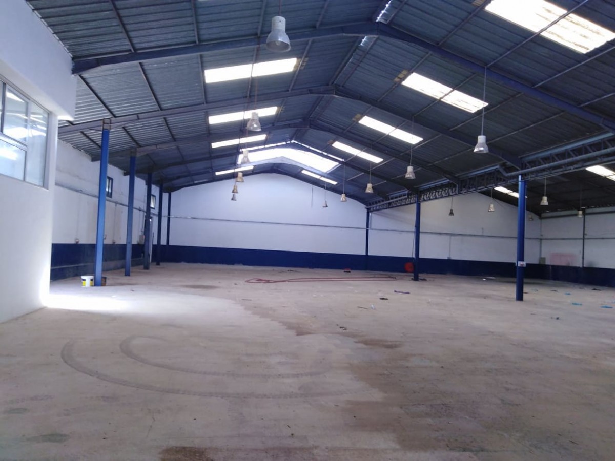 1500 M2 . L’atelier couvre 1500 M2 dimensions 40 x 37,5 mètres environ hauteur sous plafonds 6 mètres des cotés et 9 mètres au pic . le sol est en carrelage . la charpente abrite un bloc administratif de deux bureaux et sanitaire qui couvre 48 M2 sur deux niveaux . Le bloc social sus charpente aussi coure 18 M2 . la puissance électrique est de 80 Ampères . Le local se situe dans une zone industrielle facilement accessible .