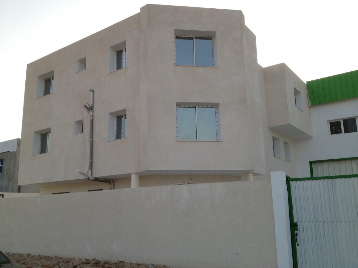 Le reste est formé par un bâtiment en dalle en R+2 neuf abritant le bloc social , le bloc administratif et un appart de fonction en dernier étage .