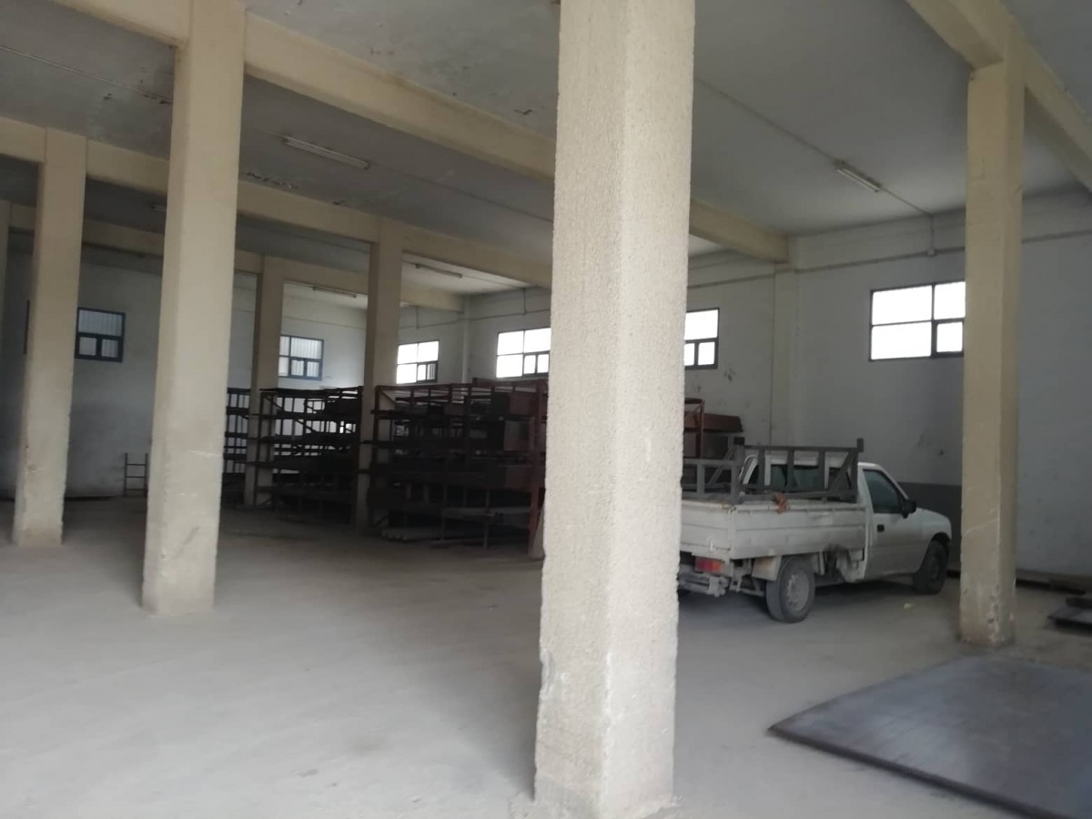 L’Agence Immobilière Nour Ennasr met en location à Sousse un local Industriel surface totale couverte 2700 M2 sur un terrain total de 2600 M2 . Le couvert groupe un atelier toit en charpente de 1200 M2 hauteur 7,5 mètres des cotés et 9 mètres au pic dimensions environ 40 x 30 mètres ,sol industriel cémenté . le local en dalle compris dans cette surface couverte est de 1400 M2 en R+1 dimension 27 x 22 mètres hauteur 5,5 mètres ,piliers espacés