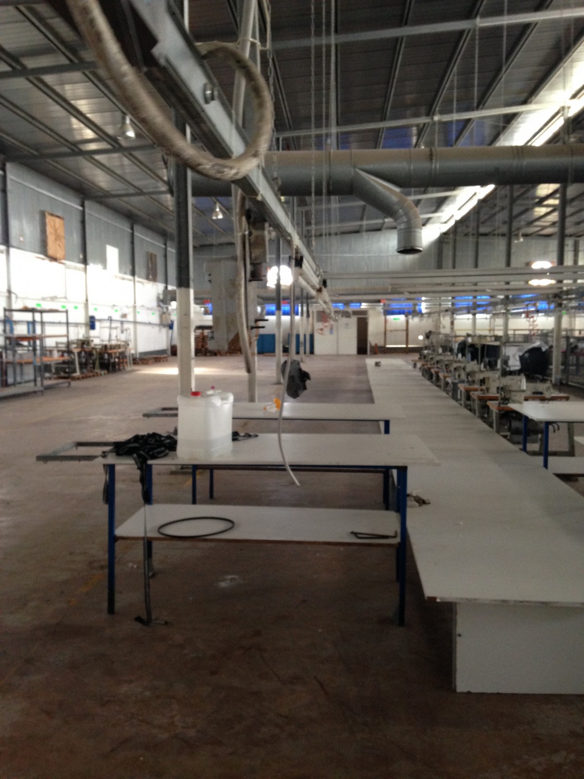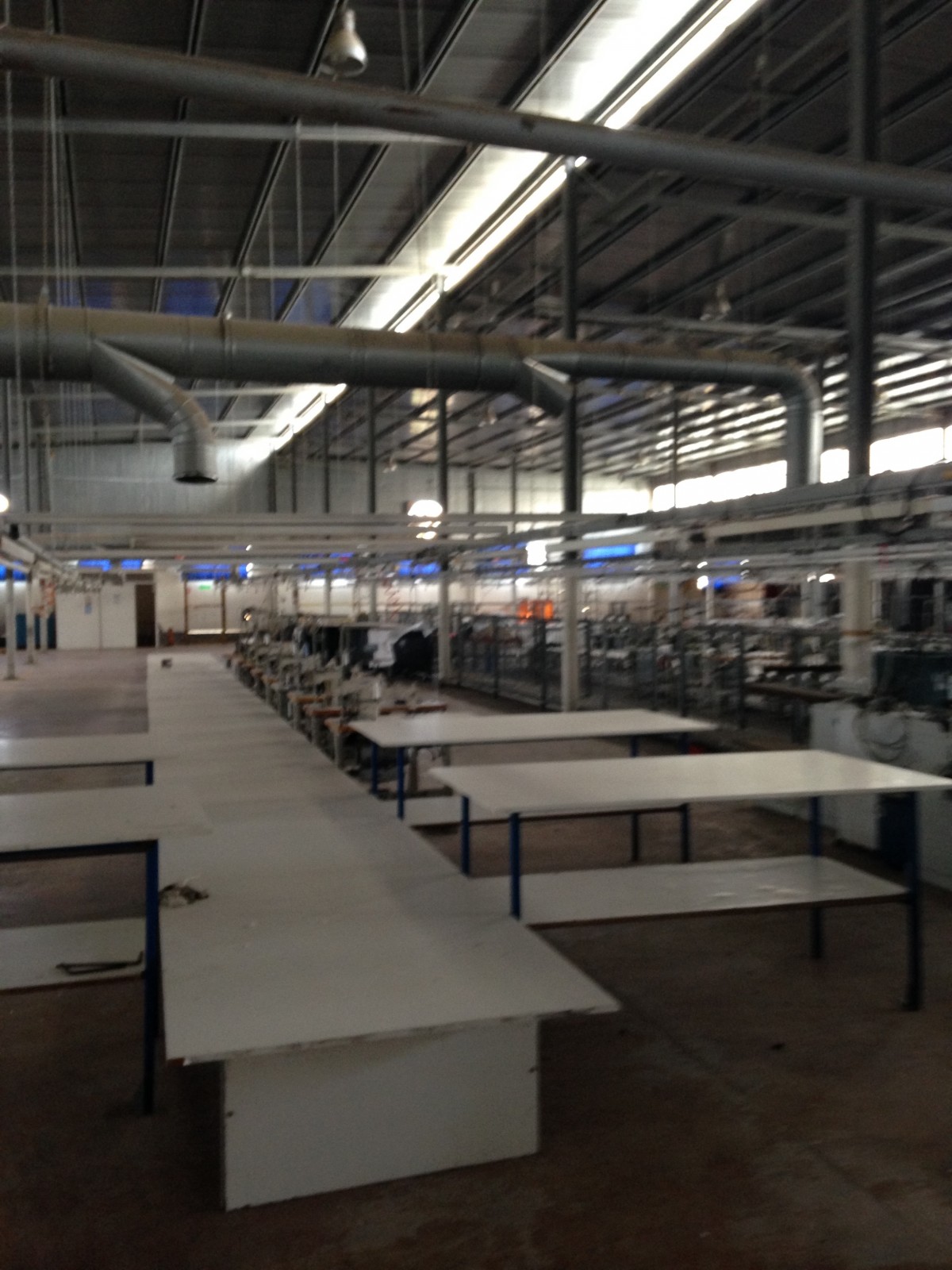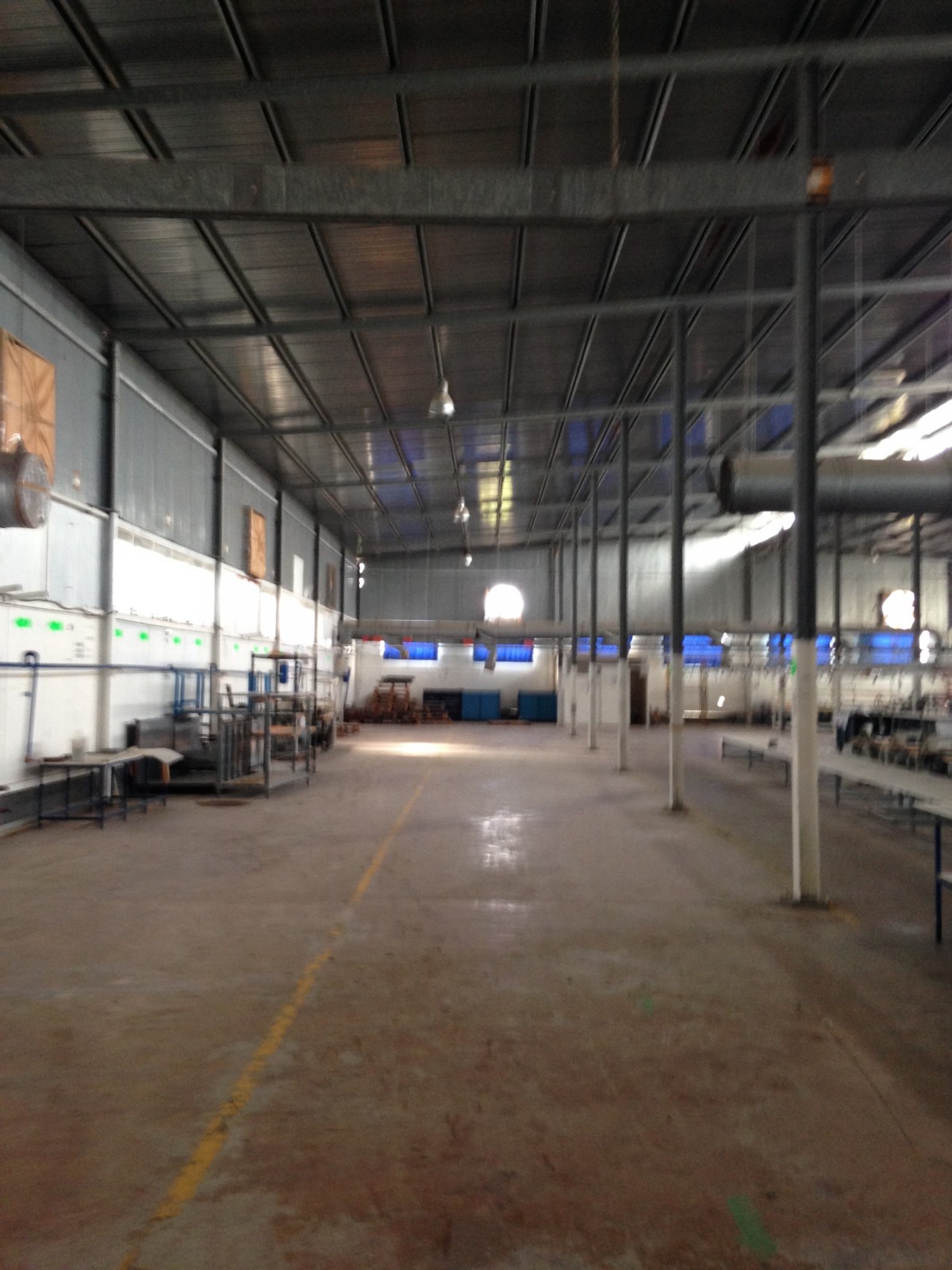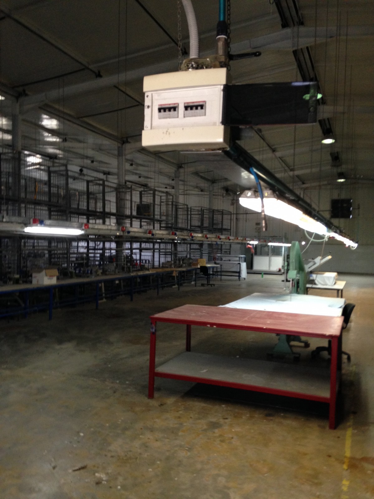 Ce dernier ne dépasse pas 500 m2 avec puissance électrique 1000 KVA et espace de production pour 1200 personnes qui opérait dans le domaine de la confection avec toutes les installations de canalises , air comprimés et équipement de rangement , de coupe et de production qui pourraient servir . le local est clôturé indépendant sur la voie principale avec espaces verts à l’intérieur et bungalow de logement de fonction et bureaux de direction .