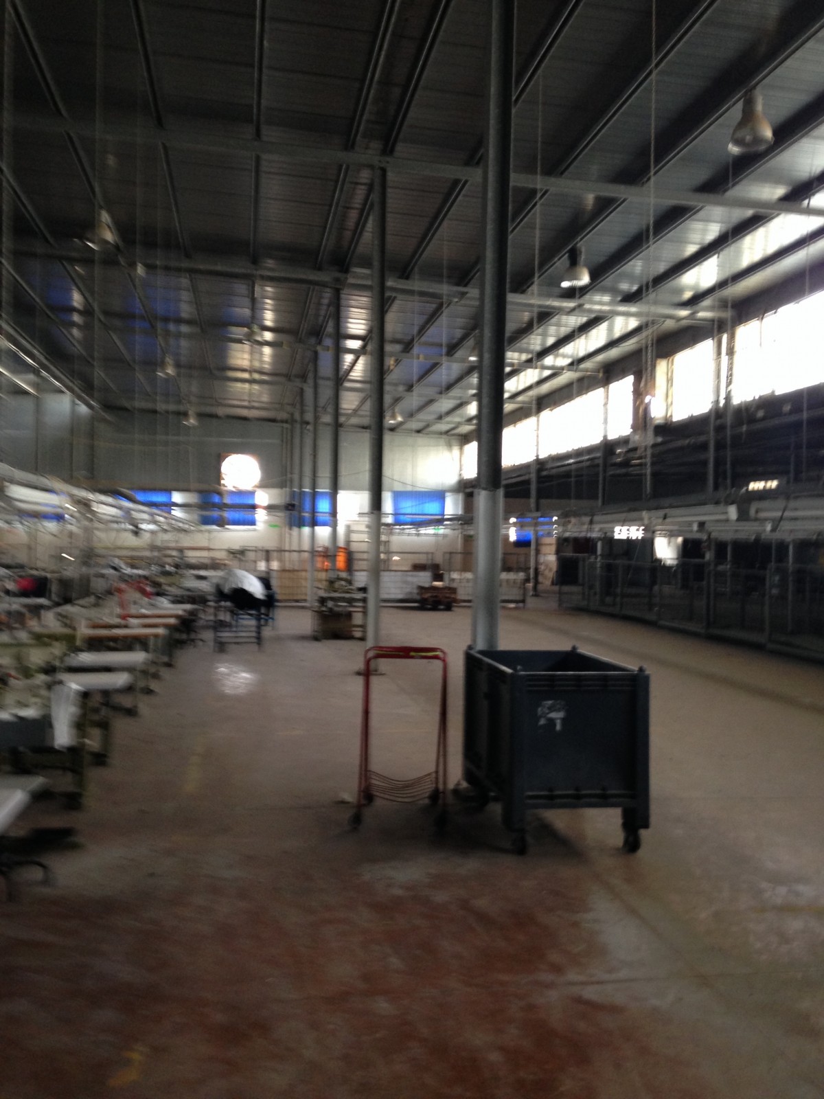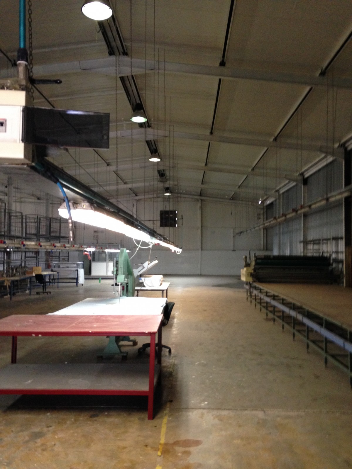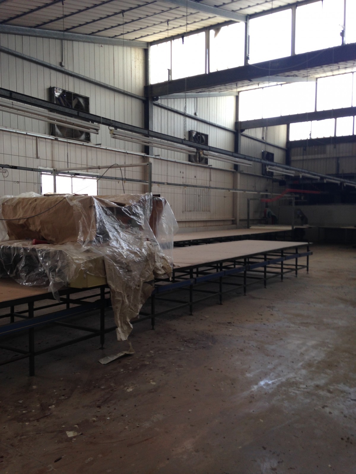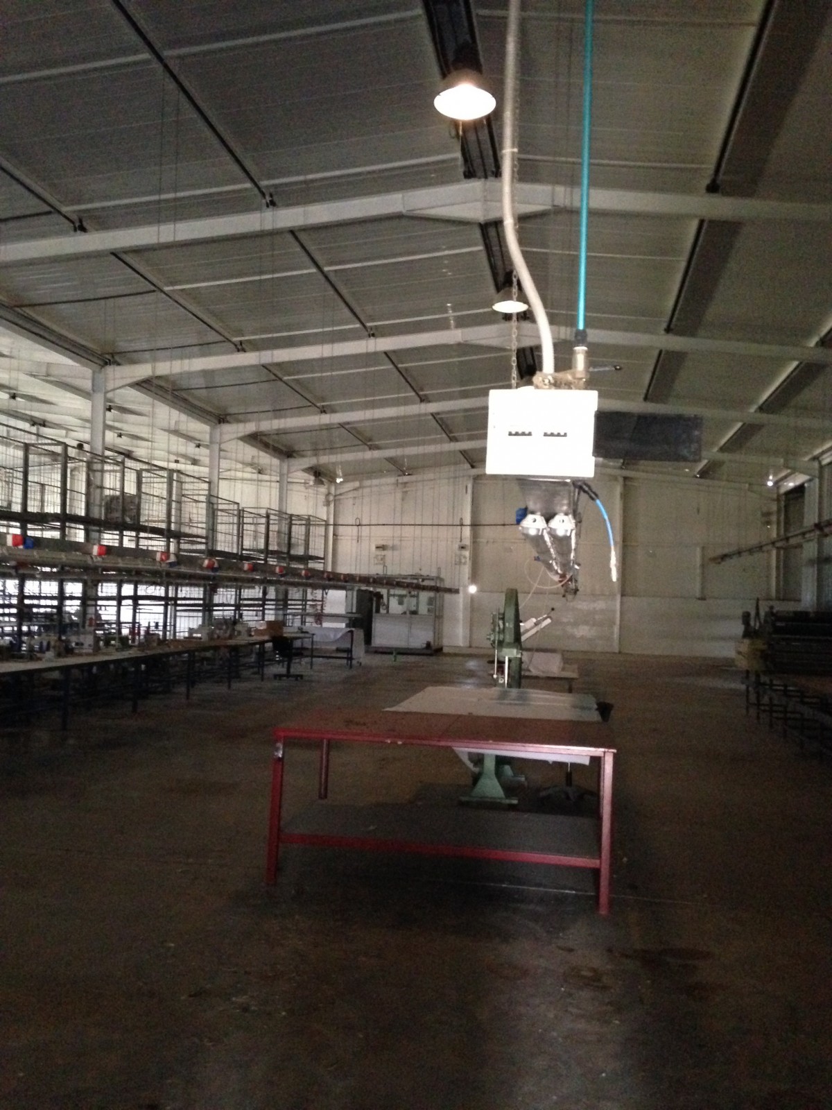 Ce dernier ne dépasse pas 500 m2 avec puissance électrique 1000 KVA et espace de production pour 1200 personnes qui opérait dans le domaine de la confection avec toutes les installations de canalises , air comprimés et équipement de rangement , de coupe et de production qui pourraient servir . le local est clôturé indépendant sur la voie principale avec espaces verts à l’intérieur et bungalow de logement de fonction et bureaux de direction .