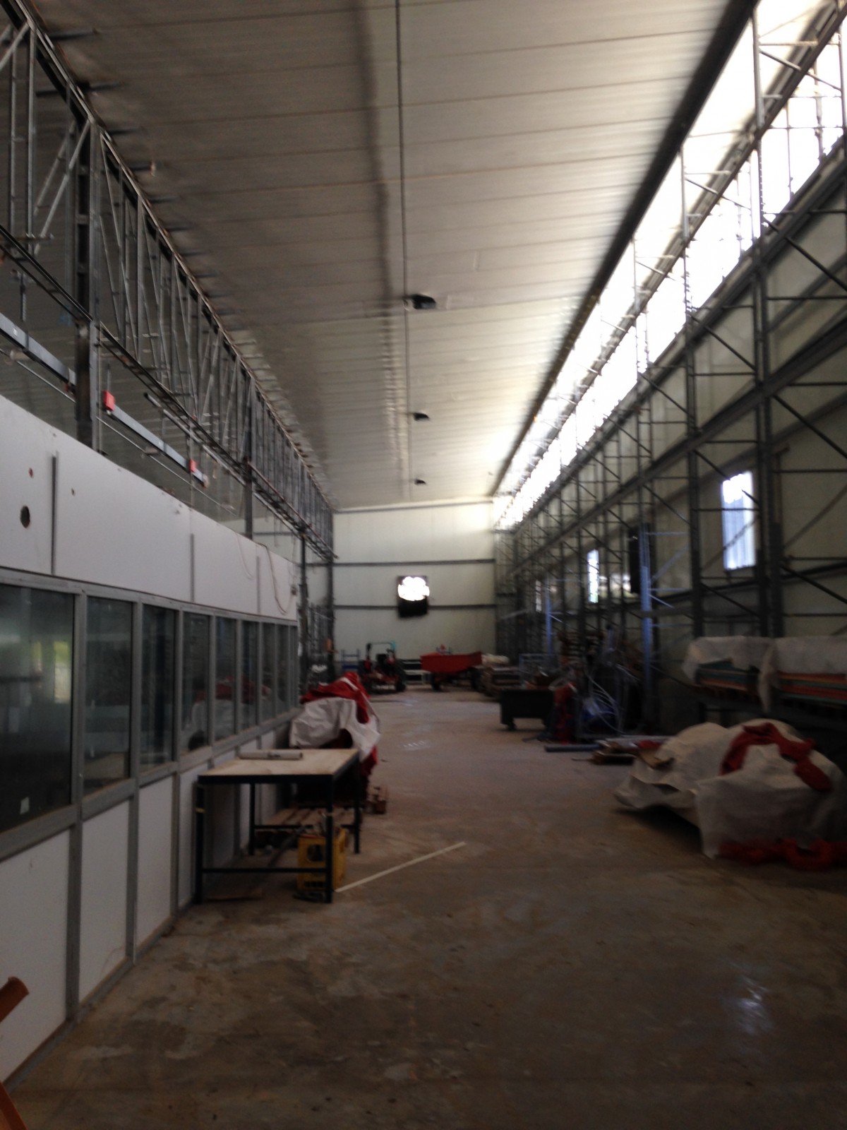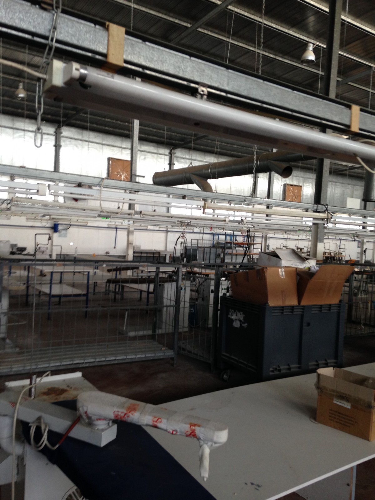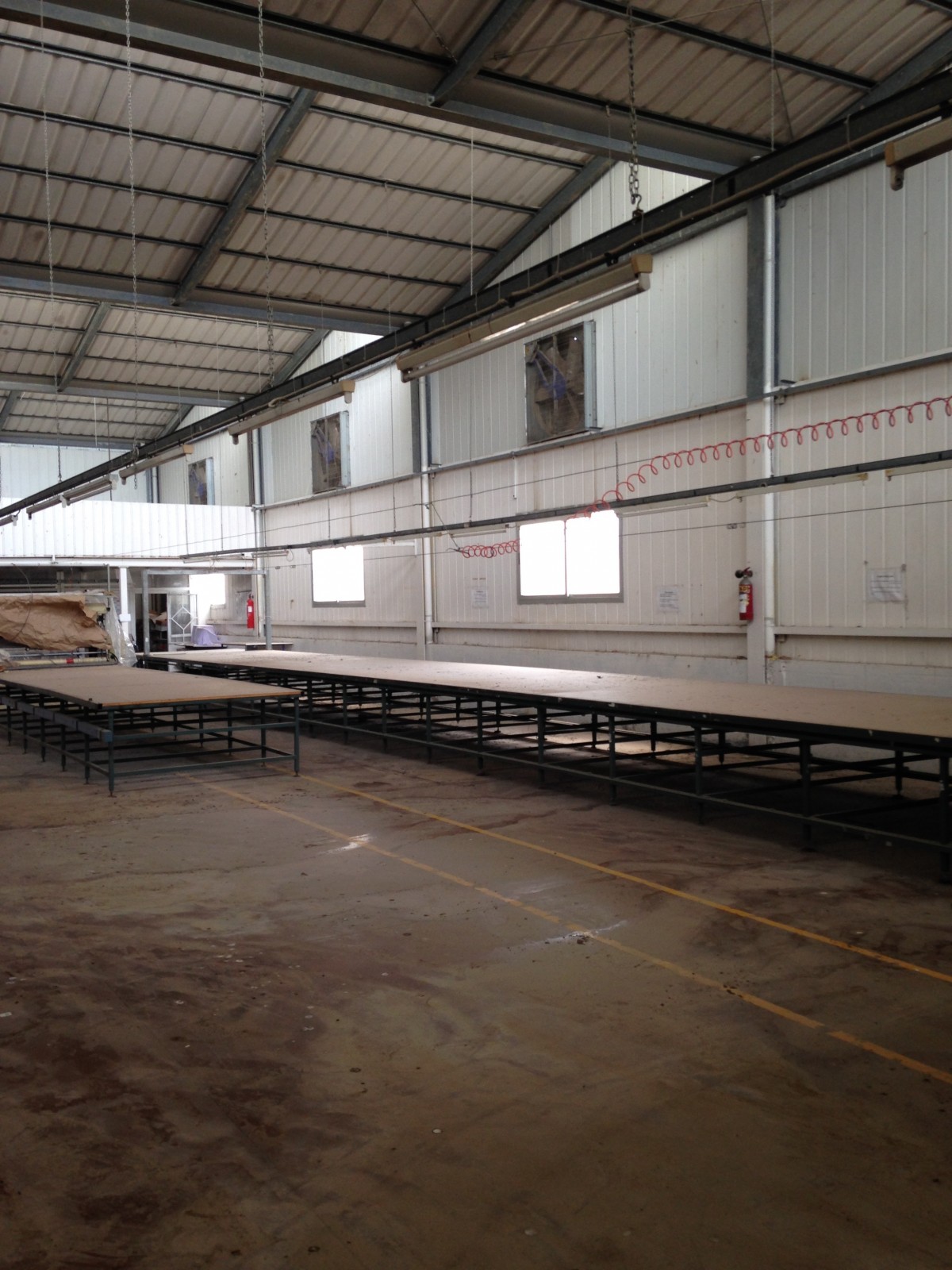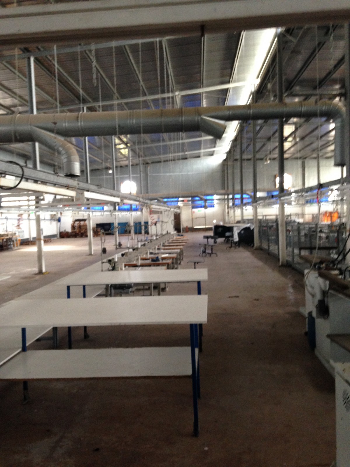 Ce dernier ne dépasse pas 500 m2 avec puissance électrique 1000 KVA et espace de production pour 1200 personnes qui opérait dans le domaine de la confection avec toutes les installations de canalises , air comprimés et équipement de rangement , de coupe et de production qui pourraient servir . le local est clôturé indépendant sur la voie principale avec espaces verts à l’intérieur et bungalow de logement de fonction et bureaux de direction .