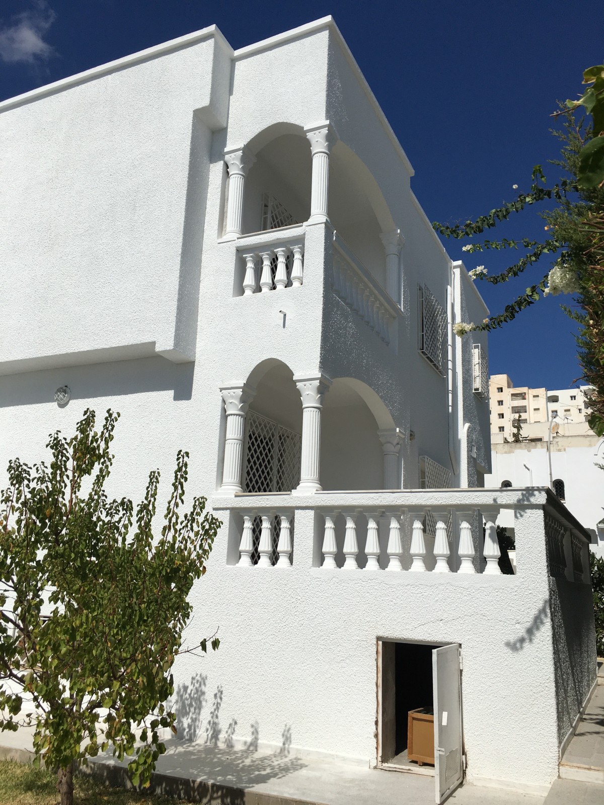 L’Agence Immobilière Nour Ennasr met en location à Cité Ennasr une villa de premier ordre sur deux niveaux surface couverte environ 380 M2 composé d’un salon , une pièce , toilette lavabo et cuisine équipée au RDC . Au sous sol couvert de faïences et accessible par le salon il y a une deux pièces et une toilette . En étage on trouve la suite parents avec dressing et Douche Jacuzzi et trois chambres à coucher avec salle de bain commune et balcon . la villa est équipé de chauffage central et climatiseurs . la villa comprend un garage , un débarras sous sol et une toilette au jardin gazonné et arboré . la villa est clôturée indépendante et se situe dans une rue résidentielle calme prés de la mosquée et de toues les commodités de commerce , écoles , administration et marché .