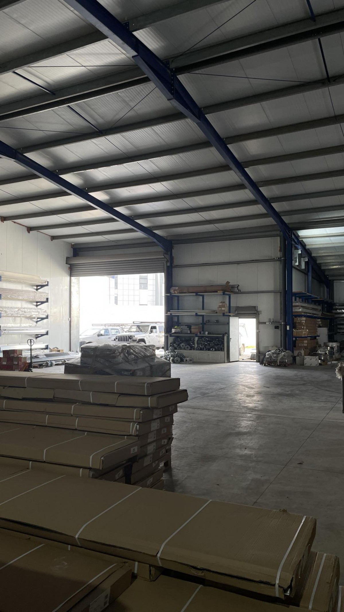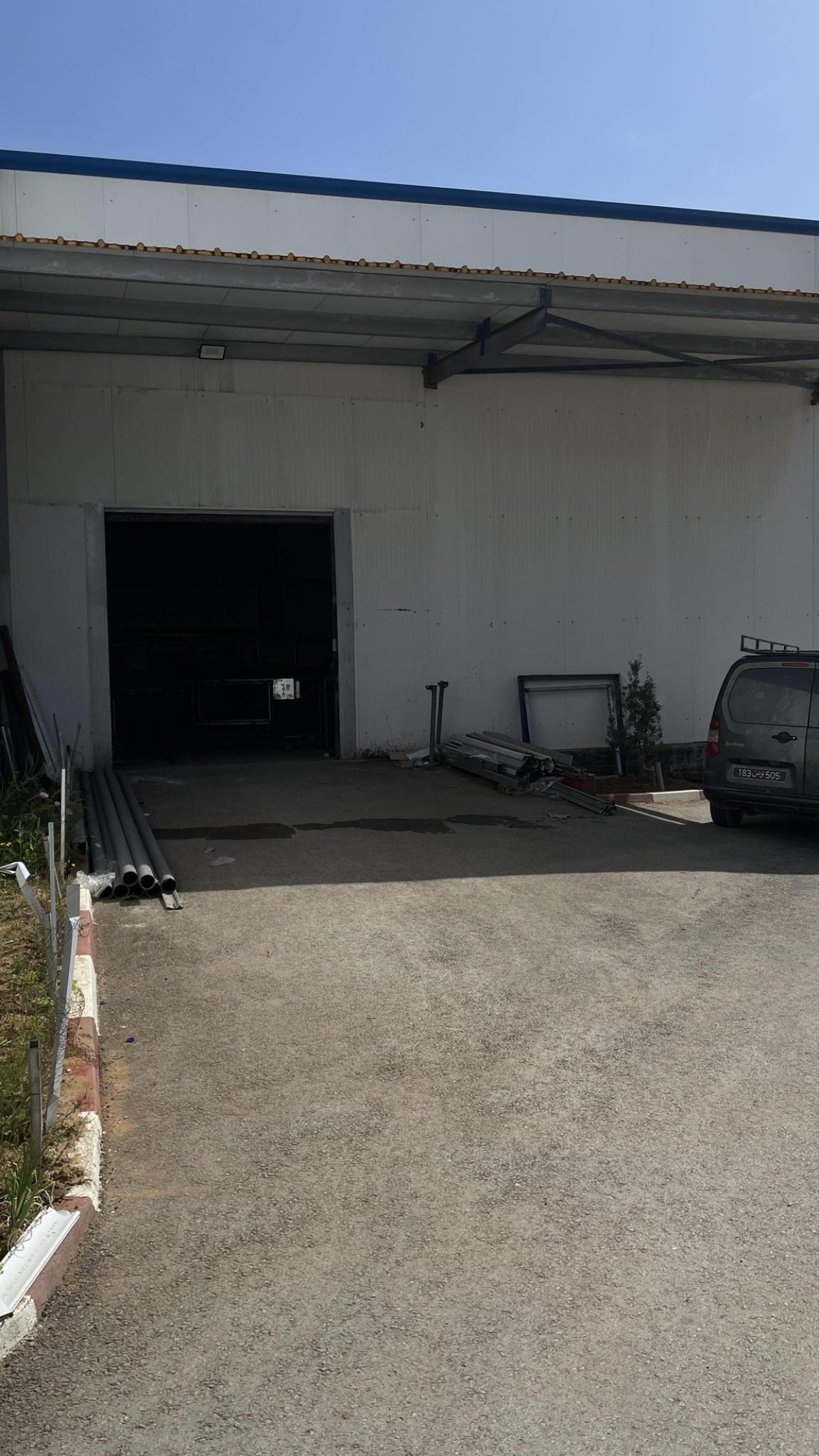 L’Agence Immobilière Nour Ennasr met en vente à Tunis Nord un local Industriel Neuf de surface couverte totale de 1025 M2 sur un terrain total de 3082 M2 . Le local consiste en trois hangars rectangulaires de toit en tôle panneau sandwich , sol Industriel lisse , hauteur sous plafonds entre 6 et 7,3 M . les portes des hangars sont larges de 6 M environ . l’un des hangars comprend une mezzanine métallique de 16 M .Les murs des hangars sont en Panneaux sandwich . Le local dispose de deux auvents couvrant 217,5 M2 les deux .la puissance électrique est de 100 Ampères sur compteur triphasé .le local comprend alarme et Cam. de surveillance et extincteurs . les surface extérieurs de parking et circulation d’engins sont bitumées . Le local est clôturé indépendants avec deux portes coulissantes de 8 M de large