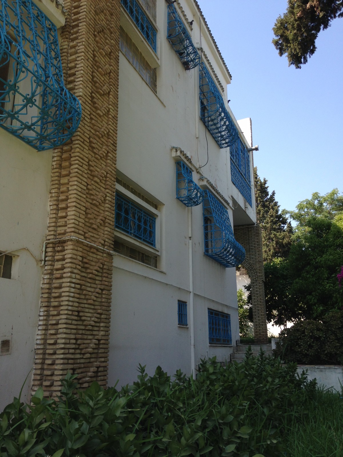 La villa est de construction des années 70 avec revêtement de briques de Tozeur et offre plus de 15 chambres , deux cuisines trois salles de bain et loge gardien . les vérandas sont ornés de faïences classiques et de piliers dar chaabane , le fer forgé est de type sidi bou said .