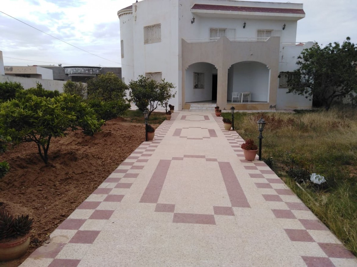 L’Agence Immobilière Nour Ennasr met en vente à Sfax à 9,5 Km du centre ville une villa haut standing sur deux niveaux surface couverte 450 M2 sur un terrain de 928 M2 . la surface couvert est répartie à moitié pour chaque niveau .les murs sont bâtis en pierres . Le RDC comprends salon , séjour , cuisine et sanitaire , en étage on trouve une suite parentale avec 4 chambres à coucher et salle de bain jacuzzi . La villa est clôturée avec jardin arboré d’amandier et équipé d’un garage de 32 M2 . la construction remonte à l’année 2004 et la villa dispose d’un titre foncier individuel .